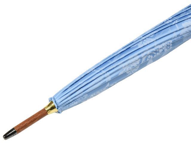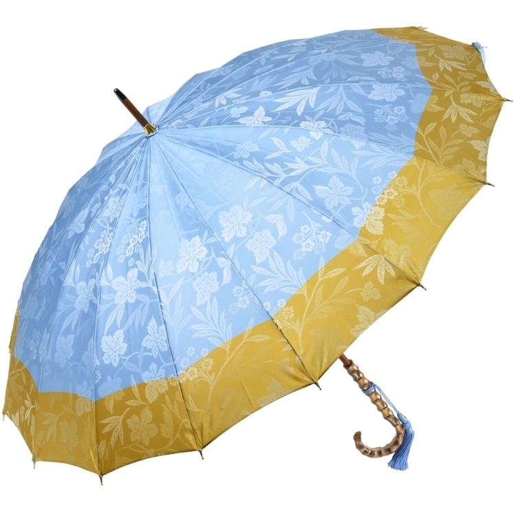 | 皇室御用達前原光榮商店の熟練職人の手による植物紋様と同系色のボーダーで構成するジャガード織の優雅な16本骨雨傘です。強度や耐久性の追求から生れた美しい16本骨のフォルム、傘生地の気品あふれるカラー、調和のとれたタッセル付寒竹手元のコンビネーションは実にエレガント。雨の日は、まさにセレブ気分満喫です。 メンテナンスを怠らなければ、一生ものとしてお使い頂けるため、ご自身でのご利用はもちろんプレゼントにもお勧めです。 |