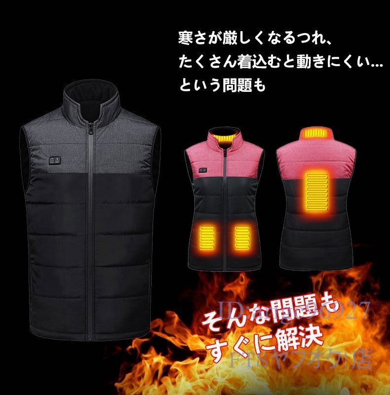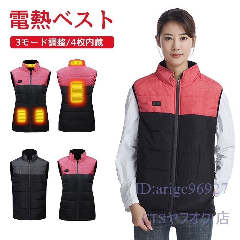 X192☆防寒着 電熱ベスト 防寒保温ベストレディース バッテリー付きません ヒーター4つヒーターヒーター中綿 作業服 ヒーター内蔵 M