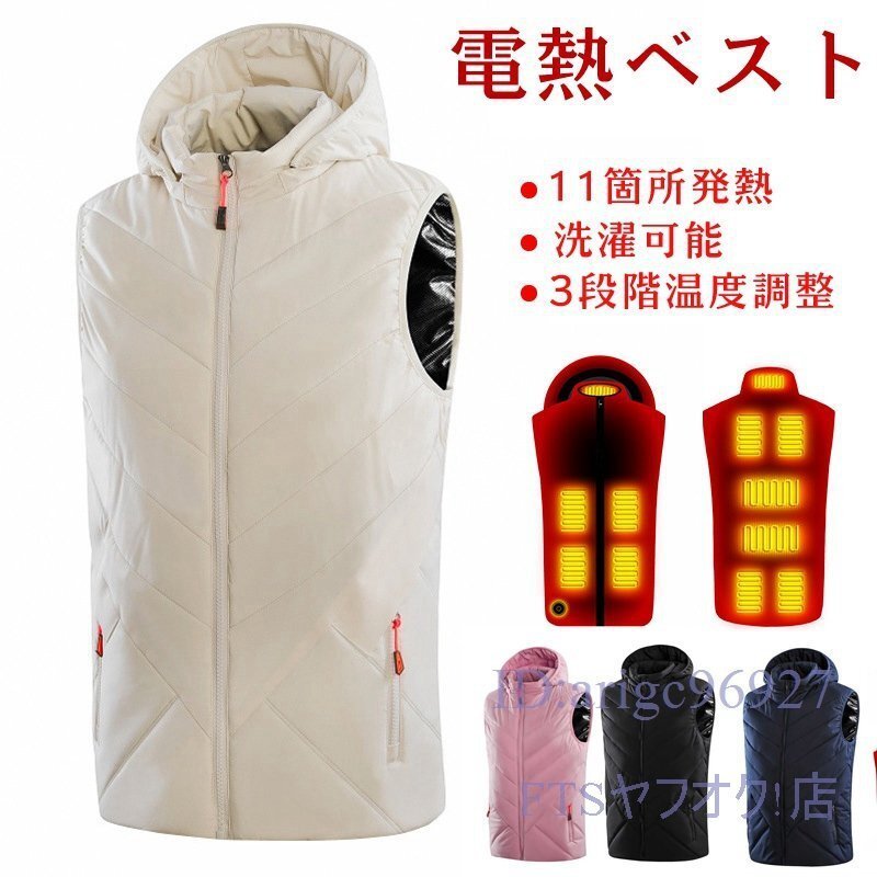 W913☆11つヒーター内蔵ヒーターベスト スキー 防寒ベスト加熱ベスト 電熱ジャケットUSB充電式 洗濯機で洗えます バイク 釣り 男女用 L