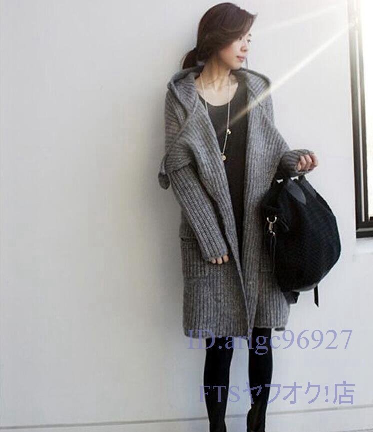 A1086☆新品秋 カーディガン レディース ニットカーディガン ニットアウター セーター ロングカーディガン 羽織 フード付き フリーサイズ