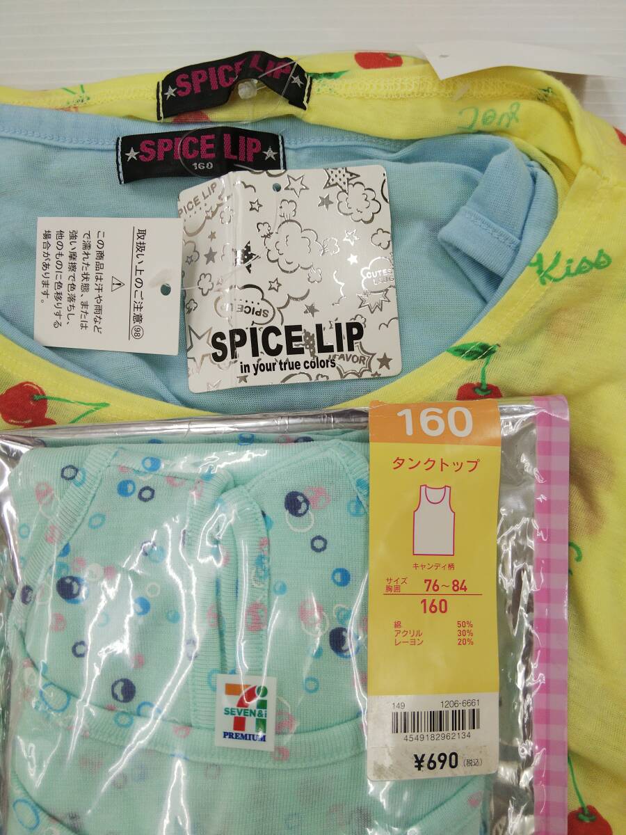 「SPICE LIP&7i BODY HEATER」タンクトップ付きTシャツ&タンクトップ肌着 黄 水色 160㎝ 2点セットを出品致します。