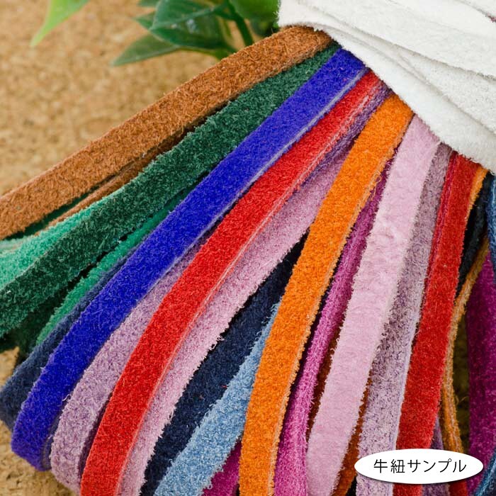 表面・裏面共にスウェード起毛加工が施された牛皮の平紐です。首の後ろで結んでネックレスとしたり、その他アイディア次第で色々なご用途にお使い頂ける革紐です。※日本製の素材を国内で加工した純日本製の紐です。 |