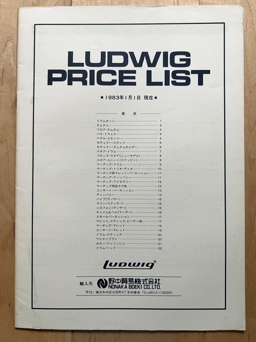 Ludwig Pricce List ラディック プライスリスト 1983年1月