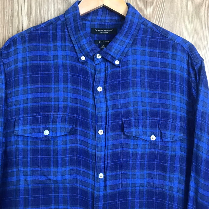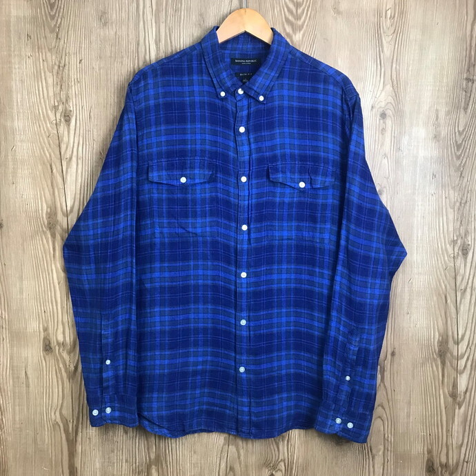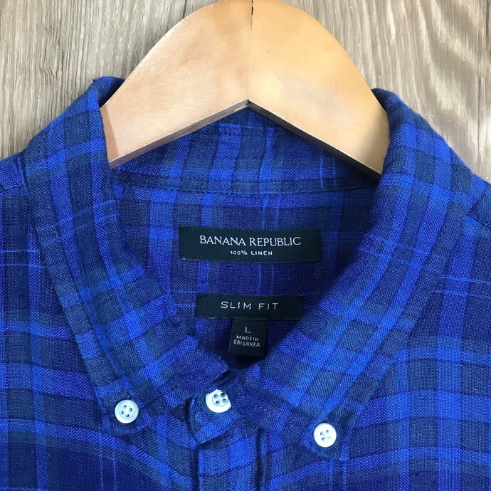 BANANA REPUBLIC CAMDEN FIT バナナリパブリック 100% リネン ボタンダウン 長袖シャツ ロングスリーブシャツ サイズ メンズ L ストリート アメカジ 古着 s24083181