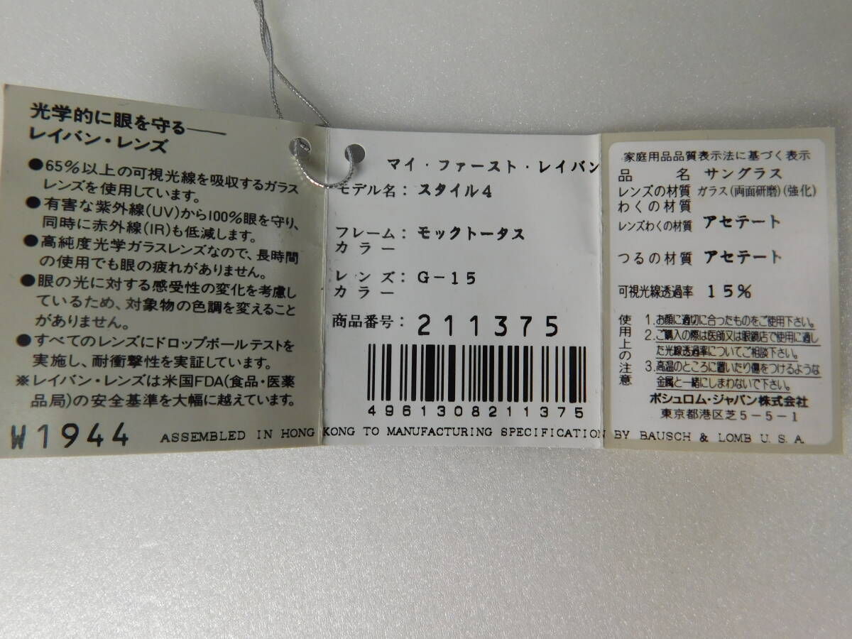 | ◆新品◆Ray-Ban B&L レイバン マイファーストレイバン スタイル4 W-1944 モックトータス G-15 デッドストック | |