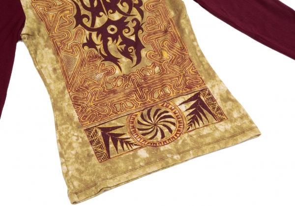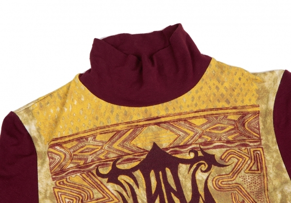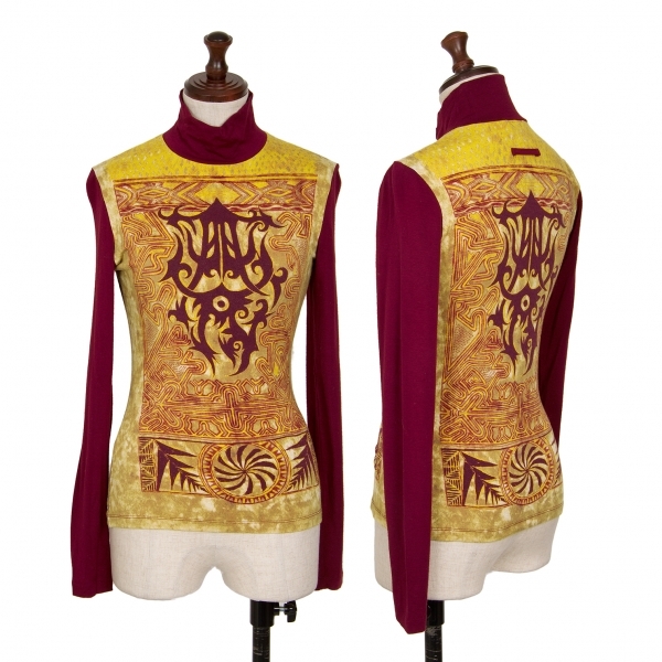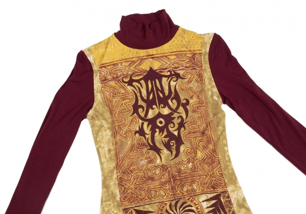 | ジャンポールゴルチエ ファムJean Paul GAULTIER FEMME トライバルプリントハイネックカットソー 黄ボルドーM |
