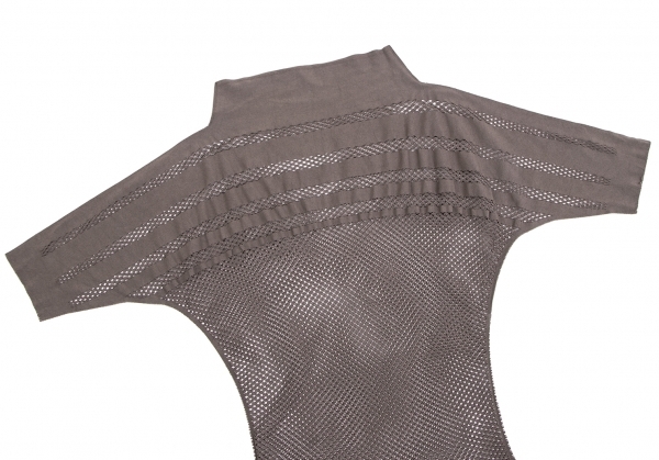 | イッセイミヤケ エーポックISSEY MIYAKE A-POC INSIDE ナイロンキュプラボーダー切替メッシュドルマンカットソー ブラウン2 |