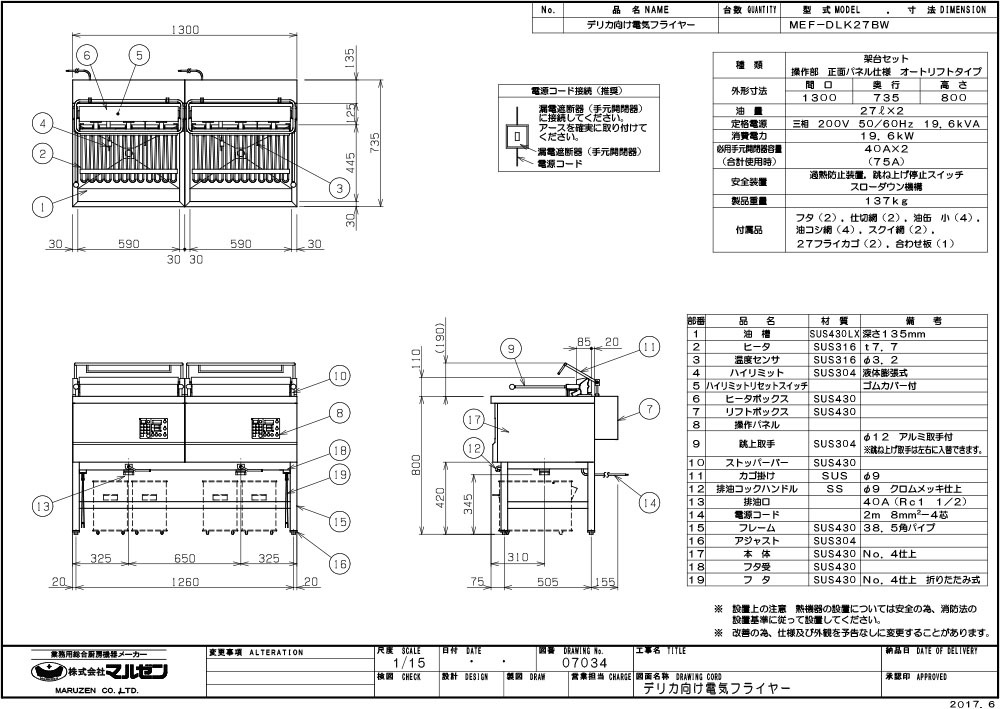 商品名:電気フライヤー デリカ向け MEF-DLK27BW