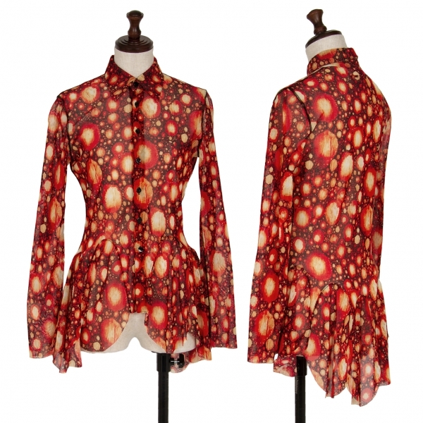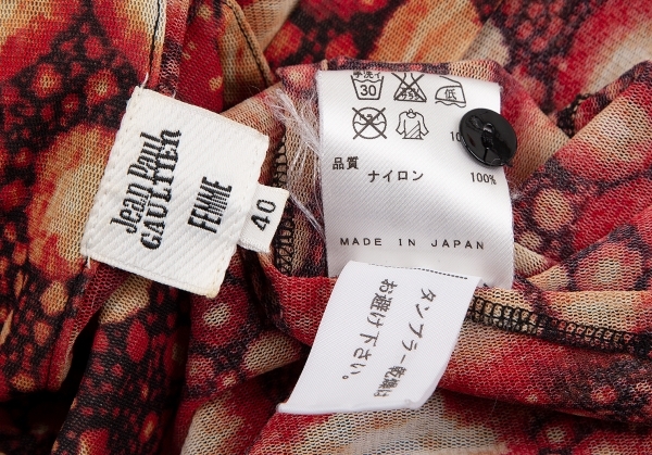 ジャンポールゴルチエ ファムJean Paul GAULTIER FEMME ポイズンドットプリントパワーネットシャツ 赤黒40 |