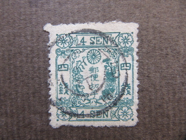 手彫切手 桜洋紙改色カナ入り 4銭(ハ)(使用済、1875年)