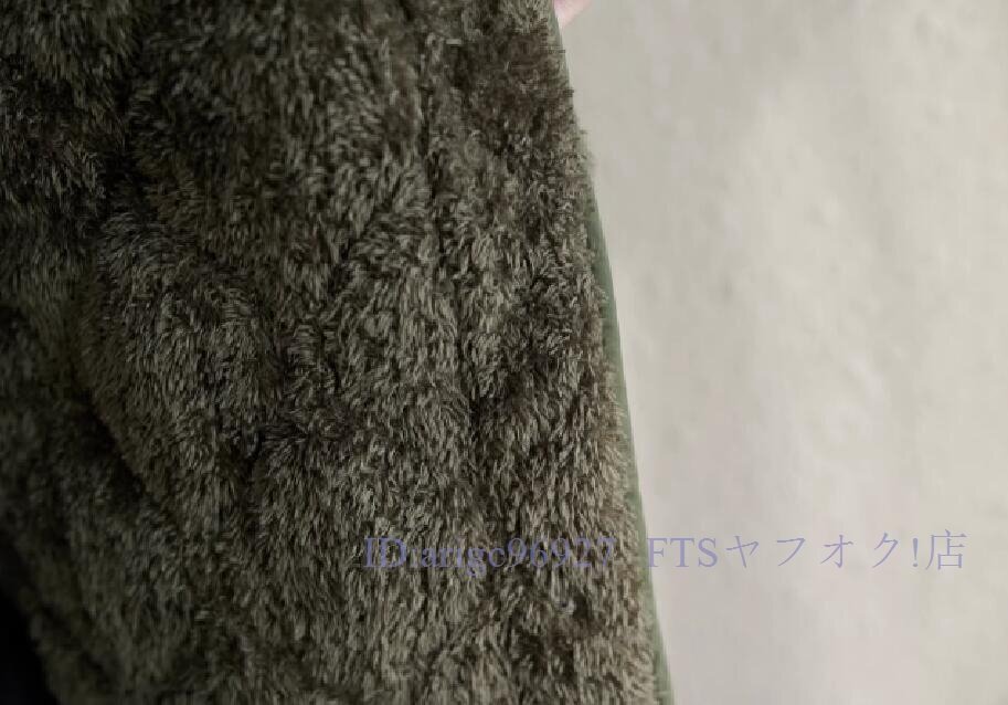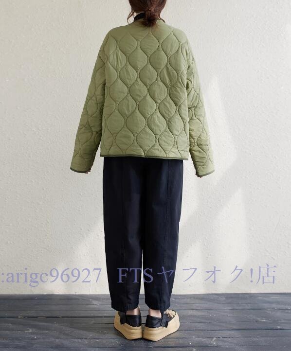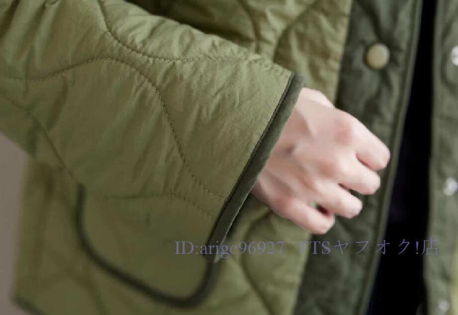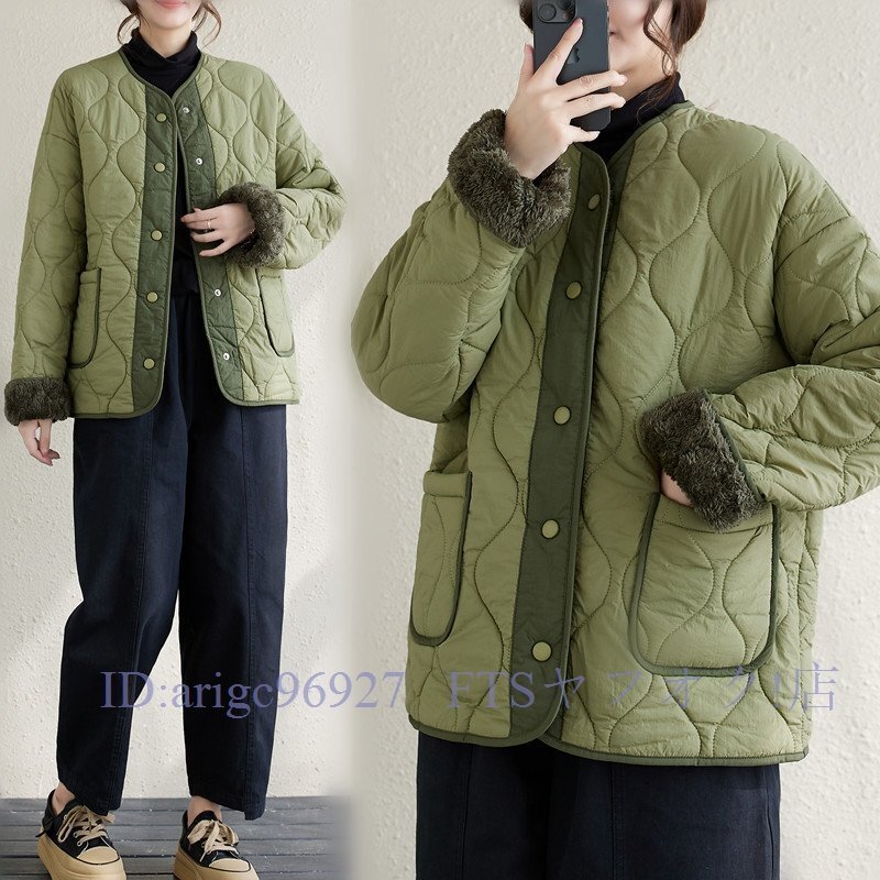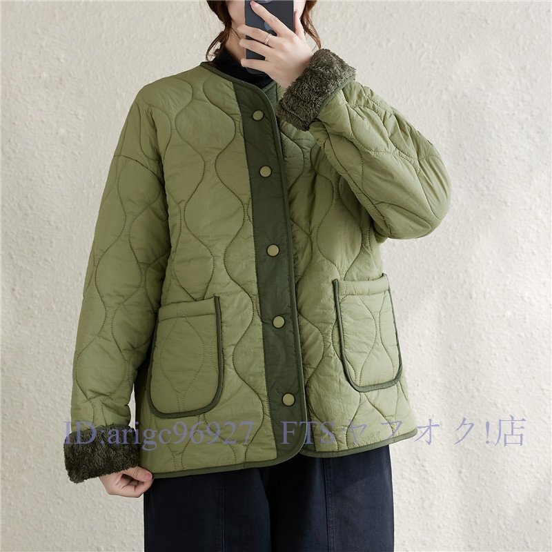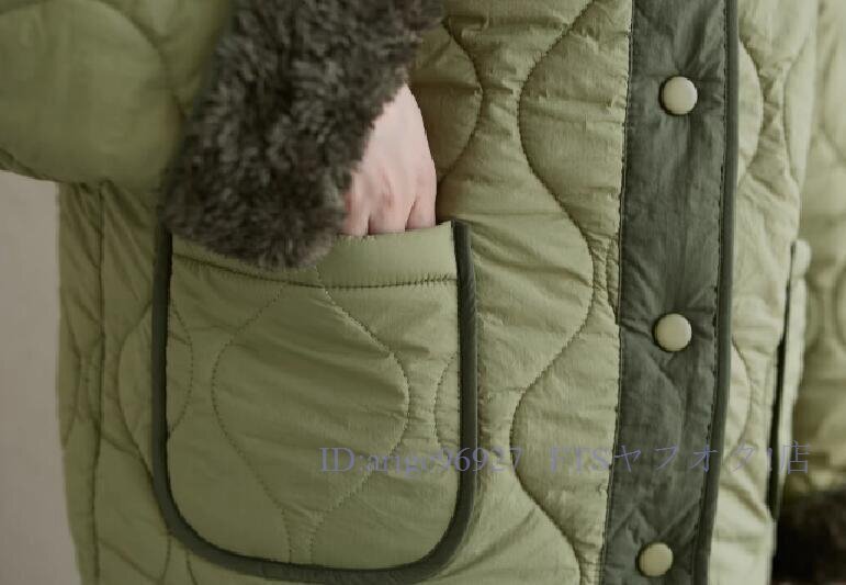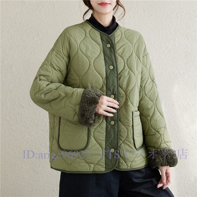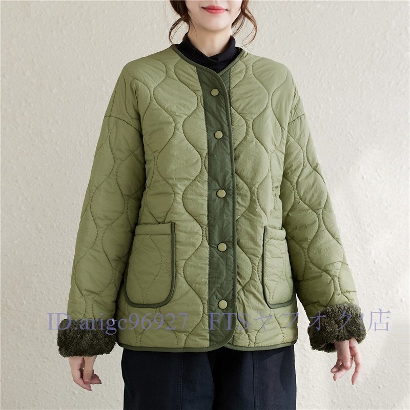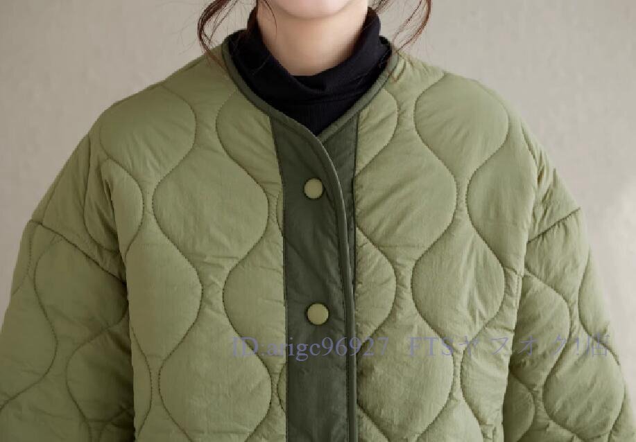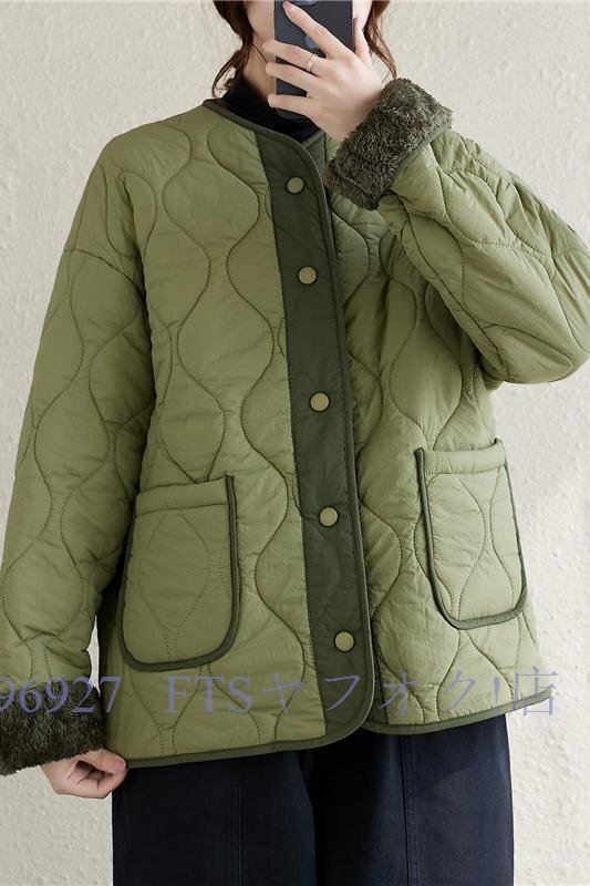 A6323☆新品秋冬 カジュアル ゆったり大きいサイズ 裏ボア 暖かい裏起毛 中綿 配色 綿コート ミニ丈コート M~2XL 緑