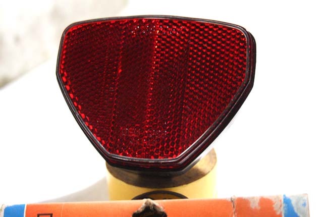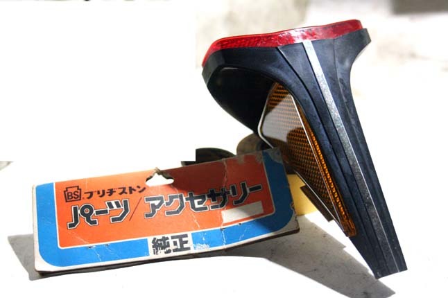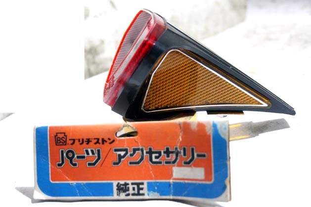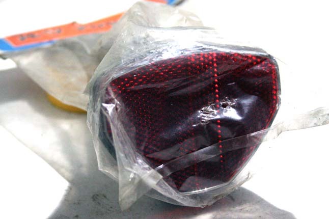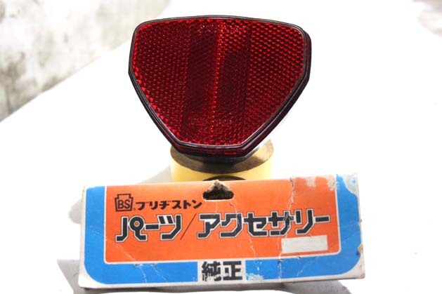 60s、70sのブリジストン自転車純正の、デット未使用、新品未開封の新品未使用のままの、大き目な反射です。