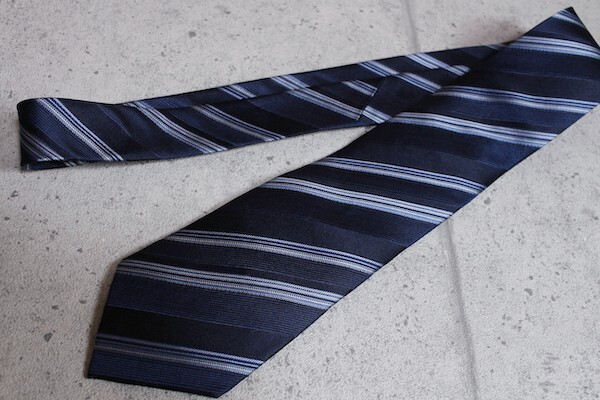 ネクタイは上品な光沢感のシルク素材を使用し、 タイバーは真鍮素材に、ニッケルメッキ加工を施した素材です。