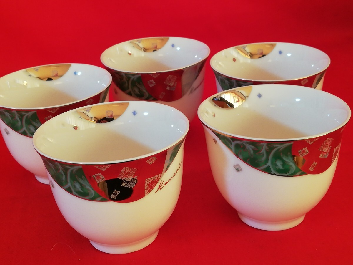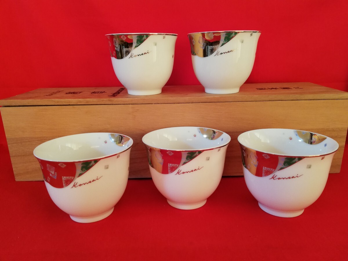 KANSAI 寛斎 かんさい 唐草 煎茶揃い 煎茶揃 5客 共箱あり 湯呑 カップ 陶器 煎茶碗揃 茶器