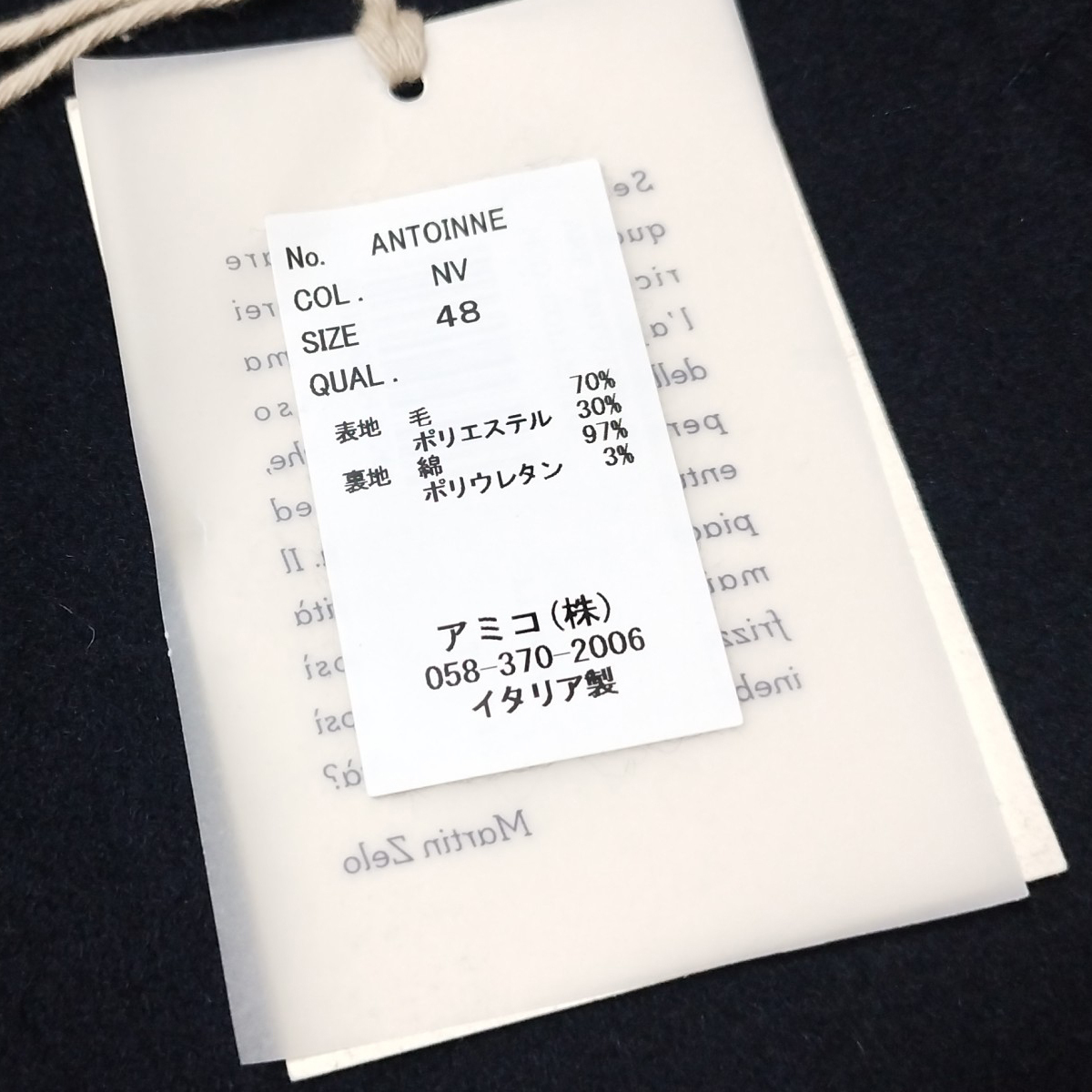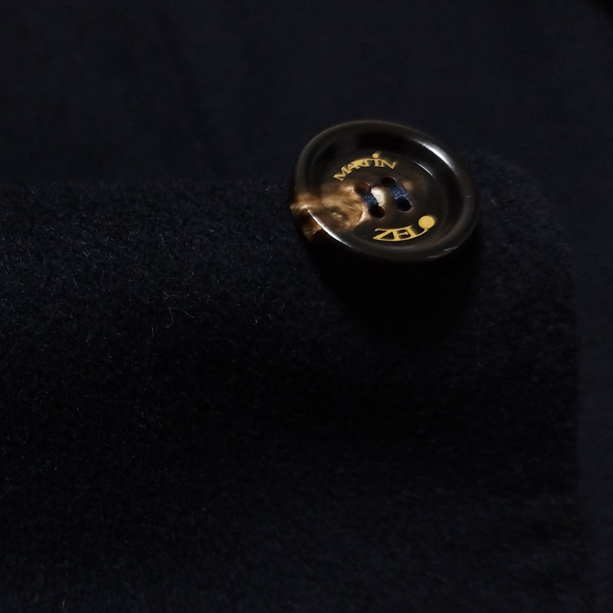 MARTIN ZELOは、ナポリ発「SARTORIA NAPOLI」(ナポリ仕立て)を信念に、遊びのエッセンスを取り入れたコンテンポラリー且つベーシックなトータルブランドです。 第二ボタンまでのピッチが違いますので、チェスターとしての使用も◎ フロントボタン4個、カフスボタン4個。ポケットは外側に2つ、内側に右に1つ、左に1つ付いています。センターベント。裏地は、半裏仕立てになっています。袖口は本切羽。また袖丈の調整ができるようにカフスの一番先は穴が開いていません。生地は、上質なウールにポリエステルをブレンドし滑らかな肌触り。艶と光沢が高級感を漂わせ、高い保温性もあり、重宝していただける一着となっています。ビジネスシーンや様々なシーンで活躍していただけます。 |