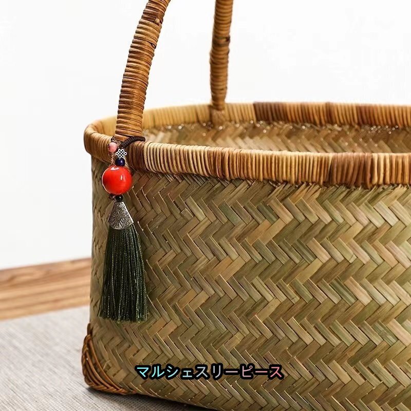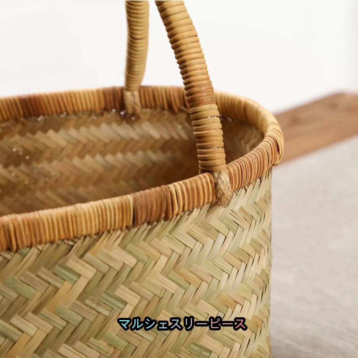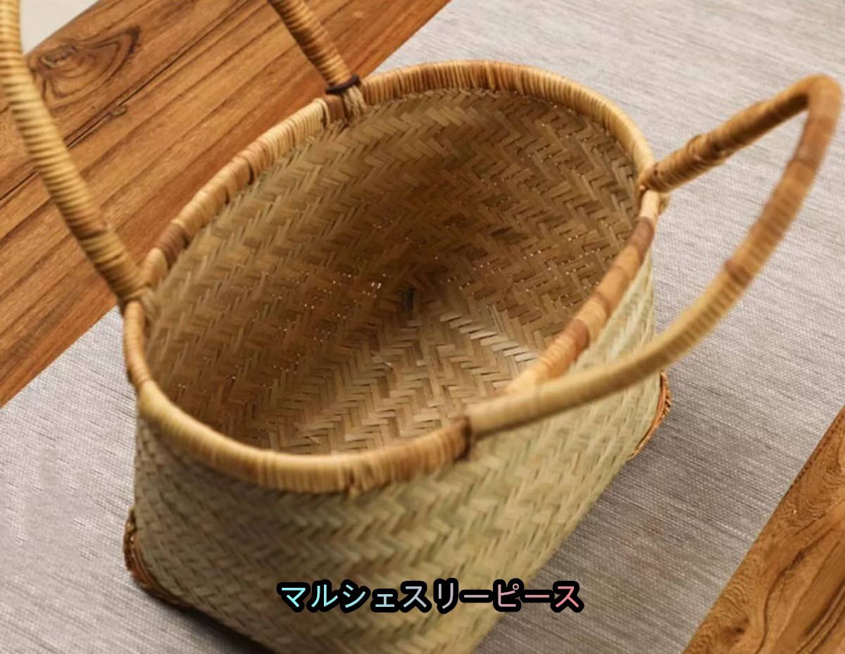竹編み上げカゴバック  手作りバスケット お洒落買い物カゴ 収納バッグ 竹編み上げカゴバック