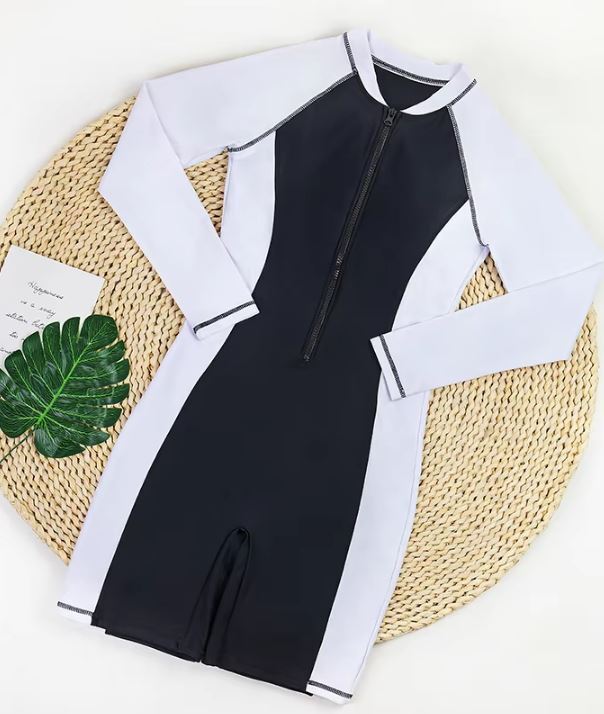 【Lサイズ 色: NO1】Tengweng-女性用長袖プリントサーフ水着、ワンピース水着、ジッパー、ラッシュガード、ダイビング、水泳、水着、