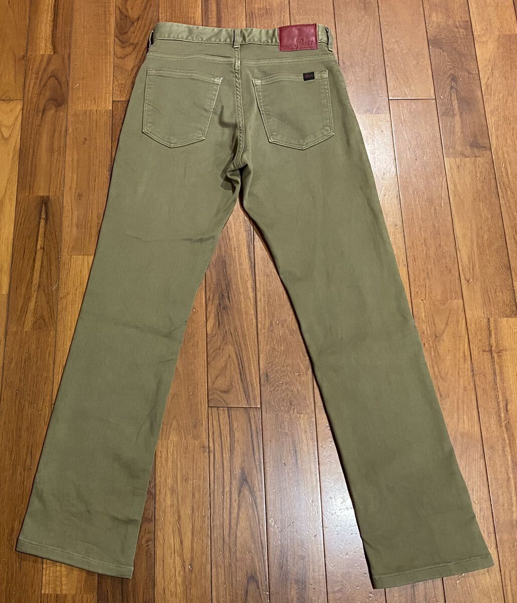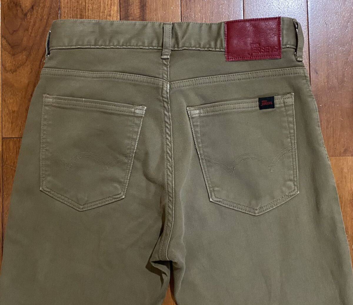 エドウィンのジャージーズ ストレッチデニムパンツ、ER03です。色はカーキです。USEDですが状態は良いです(10段階中8程度)。生地は表地はストレッチ入りで綿77%、ポリエステル21%、ポリウレタン2%、ウエストリブはポリエステル95%、ポリウレタン5%です。ジッパーフライです。正規品です((株)エドウイン、日本製)。サイズはXSでウエストは重ねずに平置きで約74cm、ヒップ約96cm、股上約26cm、股下約78cm、股下15cmのふともも部分約51cm、裾まわり約38cm、重量約560gです。発送はゆうパケットポストになります。