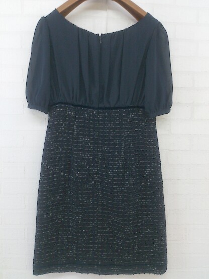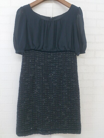 ◇ PEYTON PLACE ペイトンプレイス 異素材 半袖 ミニ ワンピース サイズS ネイビー レディース P