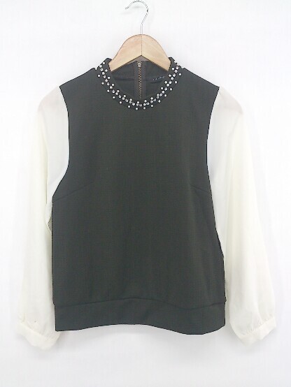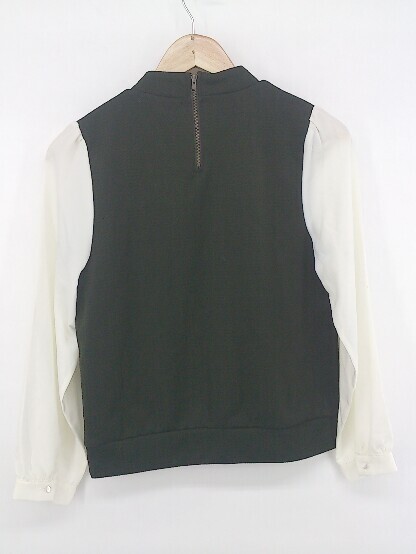 ◇ PAGEBOY ALICIA パール バックハーフジップ 切替 長袖 プルオーナー サイズF ブラック ホワイト レディース E
