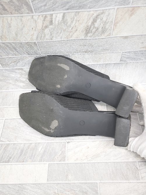 ヒール部分にダメージあり。かかと、つま先部分に擦り減りあり。