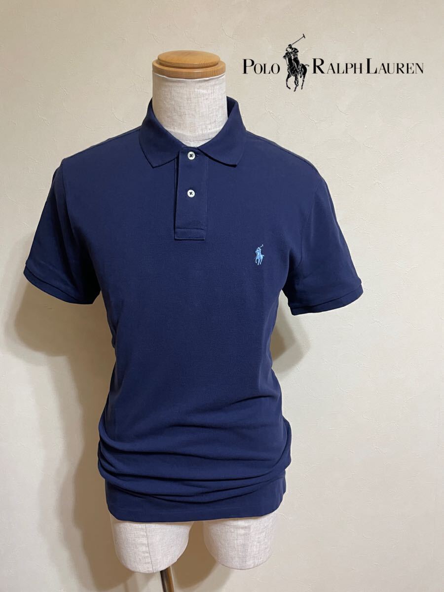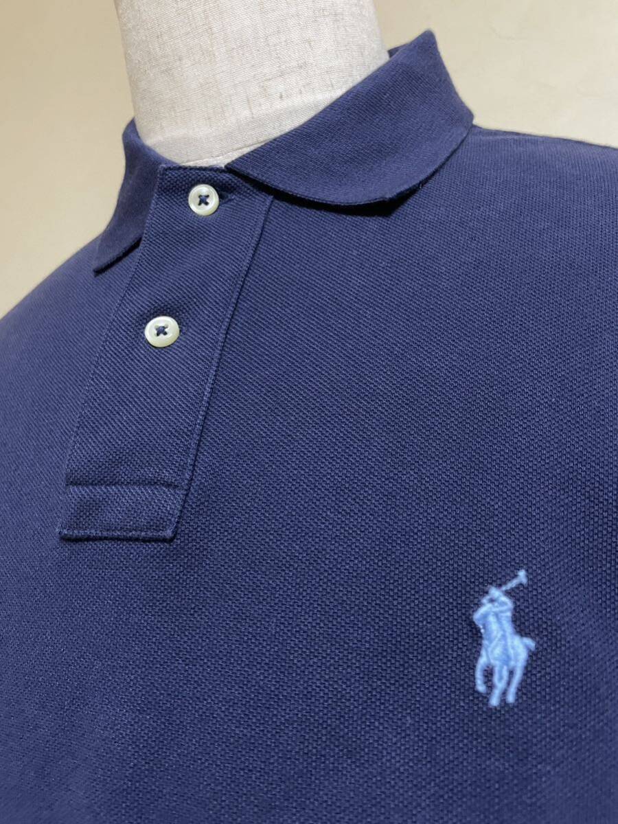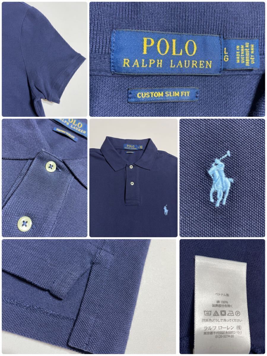 【良品】 Polo Ralph Lauren ポロ ラルフローレン 鹿の子 ポロシャツ トップス サイズL 半袖 ネイビー カスタムスリムフィット