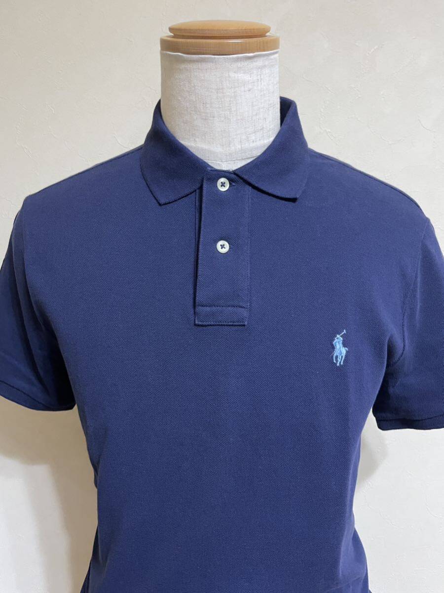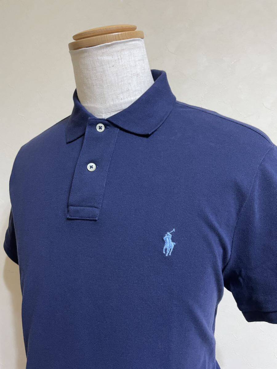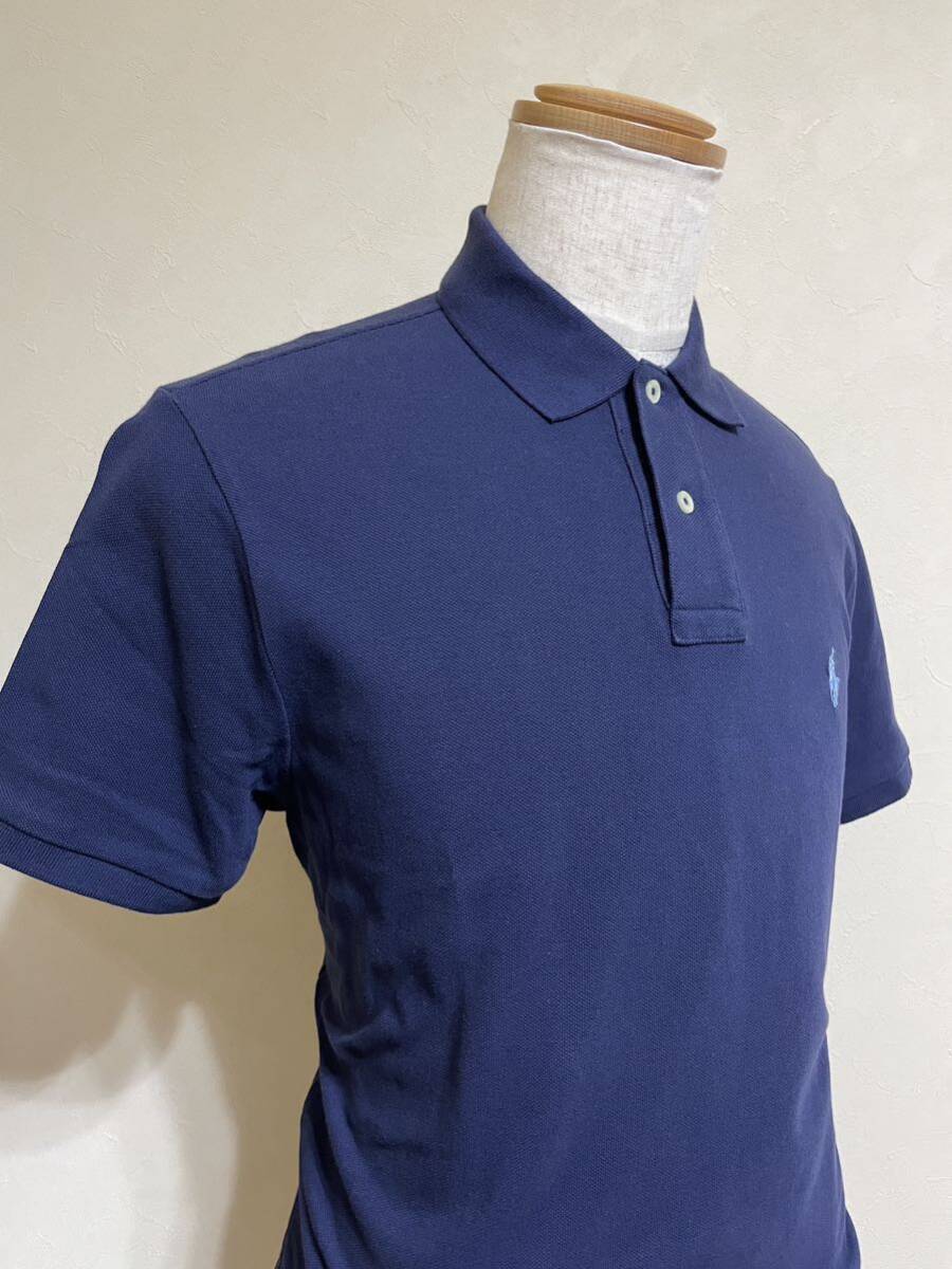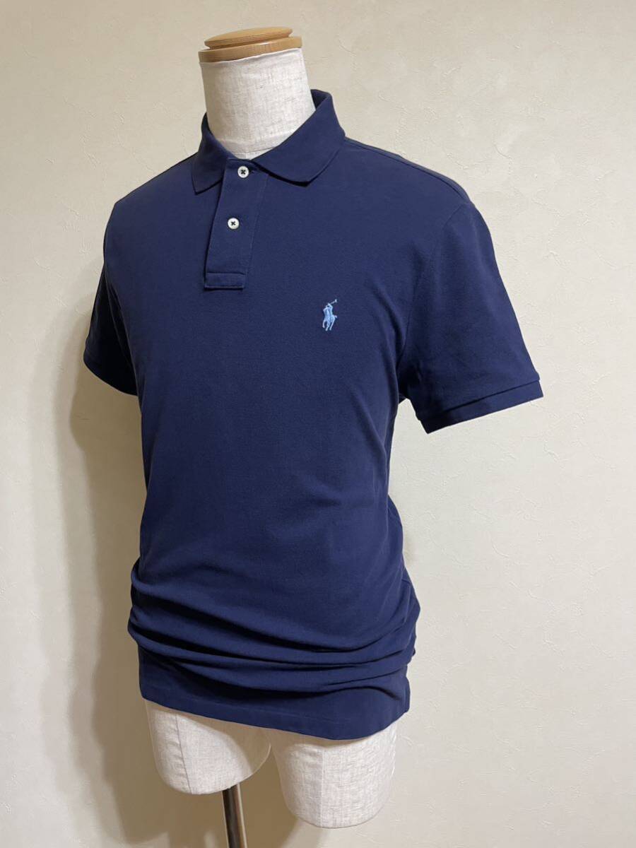 【良品】 Polo Ralph Lauren ポロ ラルフローレン 鹿の子 ポロシャツ トップス サイズL 半袖 ネイビー カスタムスリムフィット