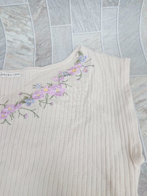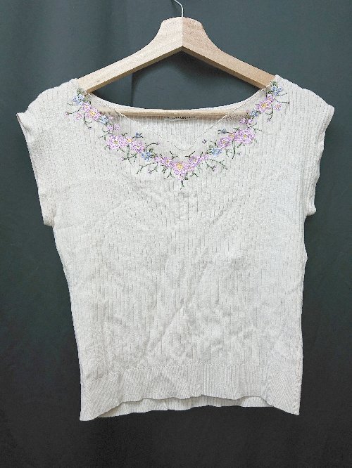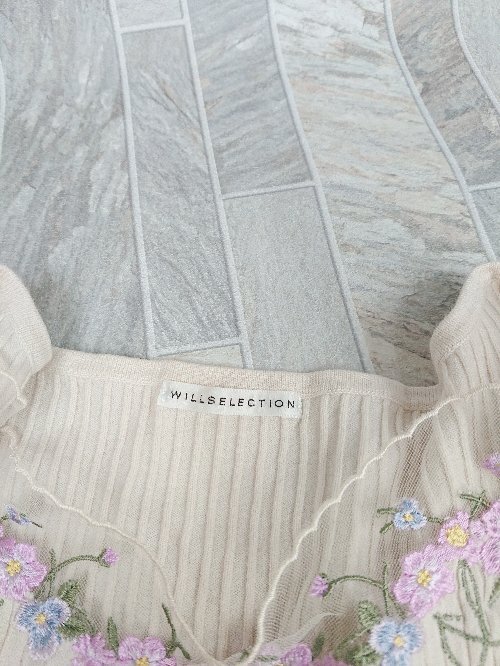 ◇ WILLSELECTION ウィル 花柄 刺繍 フレンチスリーブ カットソー サイズM ピンクベージュ レディース P