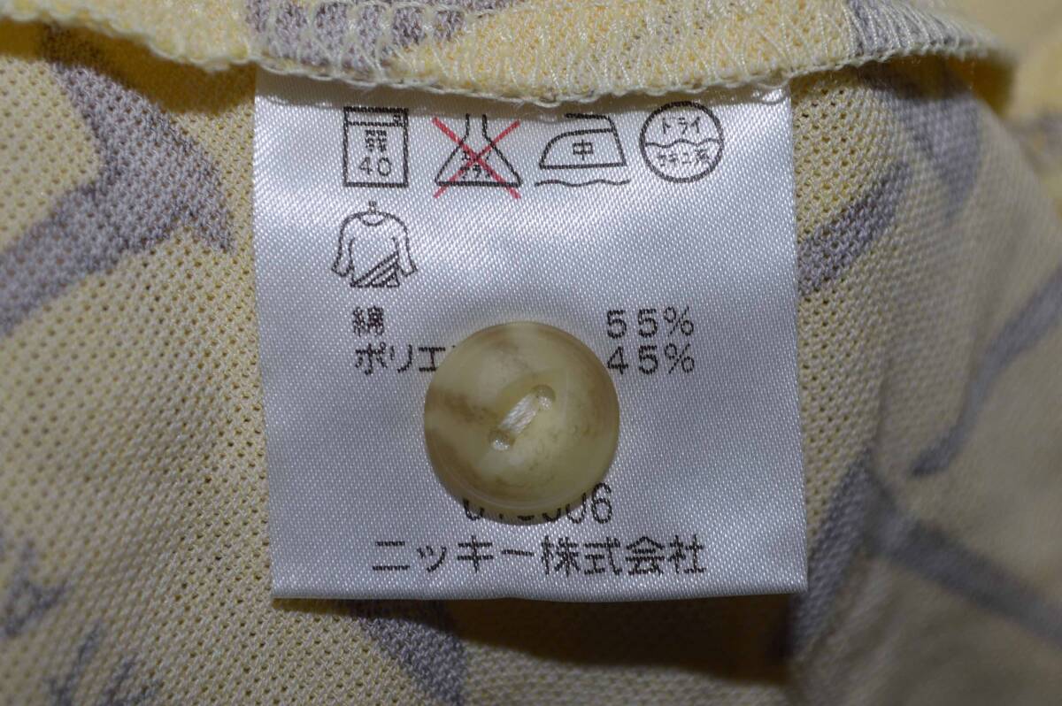 平置き計測で、首回り43㎝、肩幅49㎝、身幅57㎝、袖丈27㎝、着丈73㎝ です。