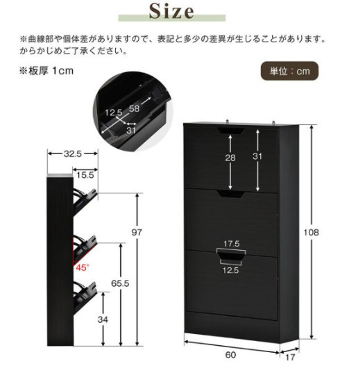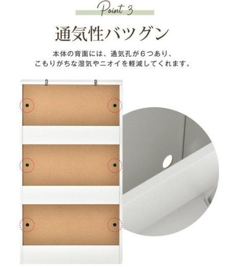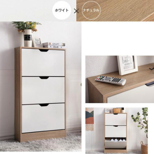 シューズボックス ホワイトナチュラル 下駄箱 超薄型 幅60奥行17cm 3段 シューズラック 収納ラック 靴収納 一人暮らし
