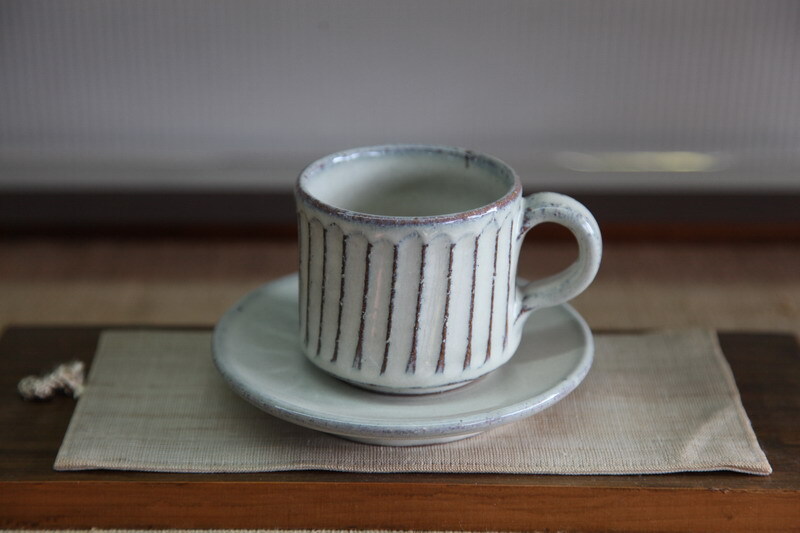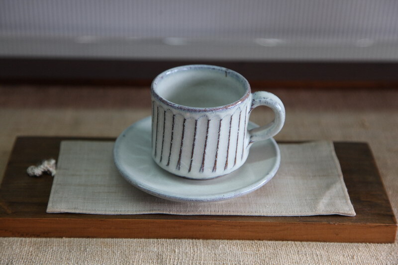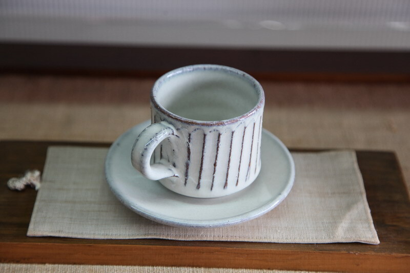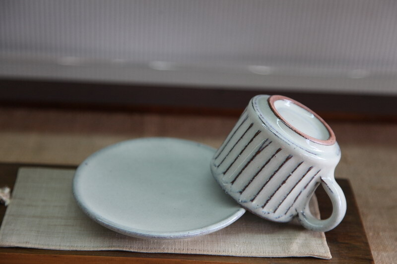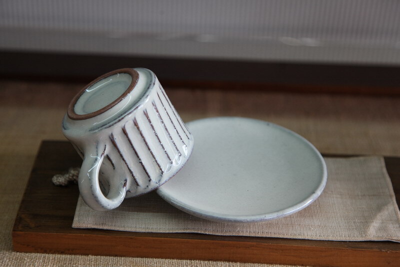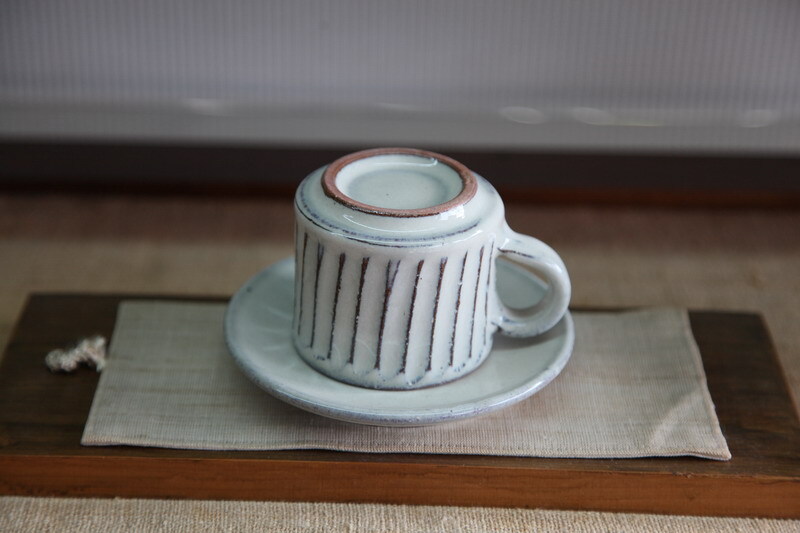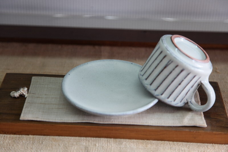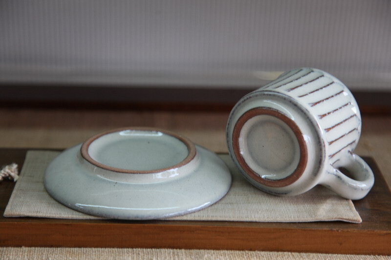 カップの大きさは、口径約7.5×高さ6.5cm 皿の大きさは、約13.3㎝。