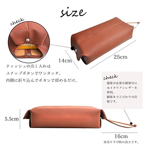 「HIGH FIVE ティッシュケース 吊り下げ 本革 ストラップ カー用品 便利グッズ 2way 壁掛け 横置き ティッシュボックス ティッシュ」▼4589681970667▼(商品説明)カジュアル・sakura ・・Color:sakura・ブランド HIGH FIVE( ハイファイブ ) スペック ・ティッシュカバー × 1 ・吊り下げ用ストラップ × 1・ 欲しいところにかけられる 吊り下げ収納 イタリアンレザー ストラップ 付 2wayティッシュカバー 吊り下げて省スペース 車内のような限られたスペースで 吊るす インテリア として おしゃれ ヘッドレストに吊るすだけで、上に座って箱が潰れてしまうこともなくなります。・節約上手エコにもぴったりで、箱入りティッシュを買わなくても袋詰めのティッシュをケースに入れれば見た目がおしゃれで、ゴミの量が減らせて環境にも優しく節約もできます。素材はしっとりとした質感の高品質PUレザー。 撥水性に優れ、水がついてしまった場合にはサッと乾拭き。 汚れてしまった場合にも気軽に水拭きが可能です。 強度が必要なストラップには丈夫な本革イタリアンレザーを使用。 吊り下げっぱなしでも安心して、長くご愛用いただけます。・サイズ 高さ 5.5cm × 横 25cm × 奥行 14cm 重さ 122g 素材ブランドHIGH FIVE(ハイファイブ) スペック ・ティッシュカバー × 1 ・吊り下げ用ストラップ × 1 欲しいところにかけられる 吊り下げ用ストラップ付 2wayティッシュカバー 吊り下げて省スペース 車内のような限られたスペースで大活躍 ヘッドレストにかけておけば、上に座って箱が潰れてしまうこともなくなります。 素材はしっとりとした質感の高品質PUレザー。 撥水性に優れ、水がついてしまった場合にはサッと乾拭き。 汚れてしまった場合にも気軽に水拭きが可能です。 水や汚れに強く、場所を取らないこのケースなら どんな場所でもティッシュを置くことができます。 強度が必要なストラップには丈夫な本革イタリアンレザーを使用。 吊り下げっぱなしでも安心して、長くご愛用いただけます。 ご利用のモニター、ディスプレイにより若干色味に差がある場合がございます。ご了承ください。 商品の生産時における装飾等は海外にて手作業で行っており、多少の差異がある場合がございます。ご了承くださいませ。 サイズ 縦 80cm × 横 25cm × 厚み 8cm 重さ 122g 素材 ストラップ:イタリアンレザー 本革 牛革 ボディ:PUレザー おすすめ 母の日 父の日 クリスマス バレンタイン ホワイトデー 誕生日などイベントのギフトにピッタリです
