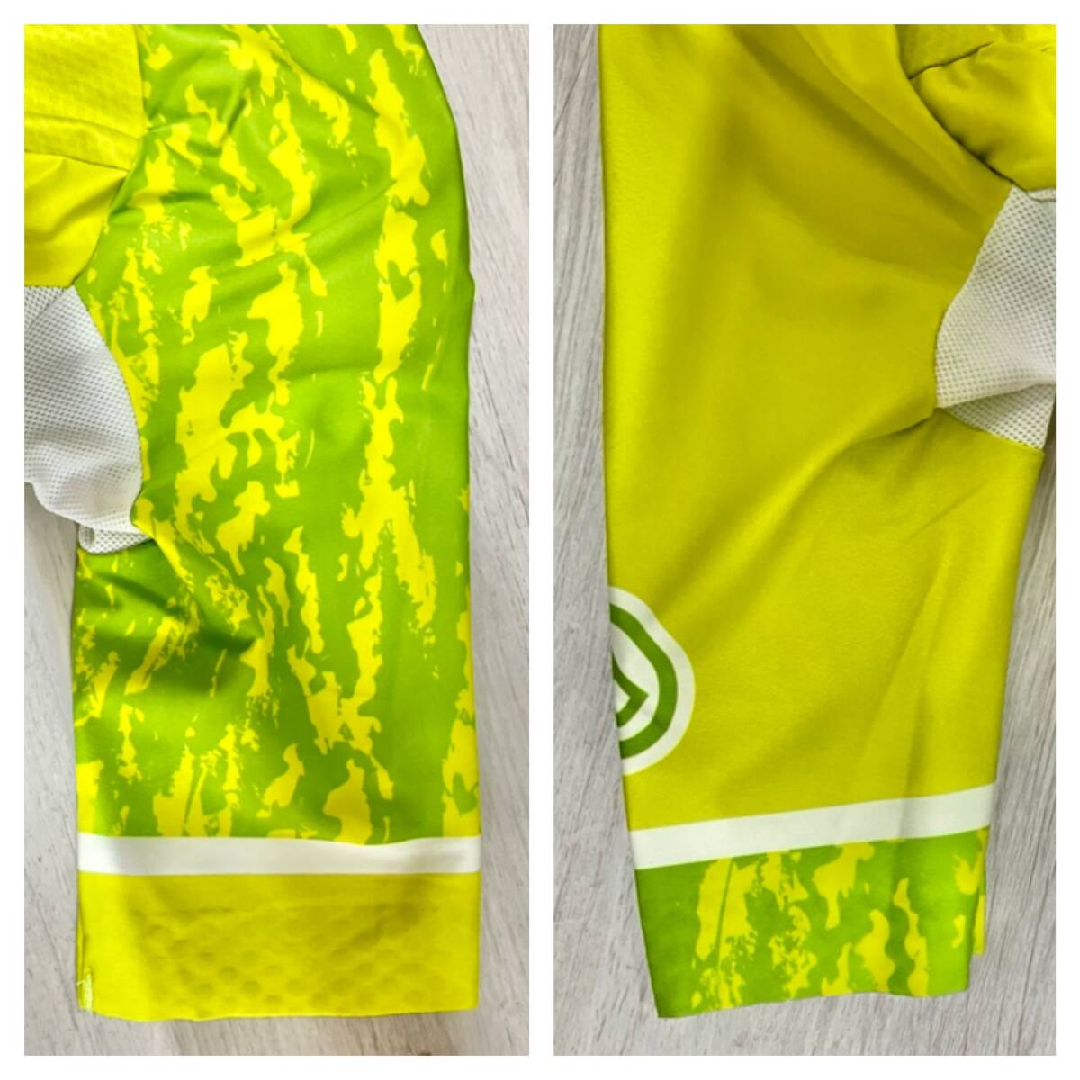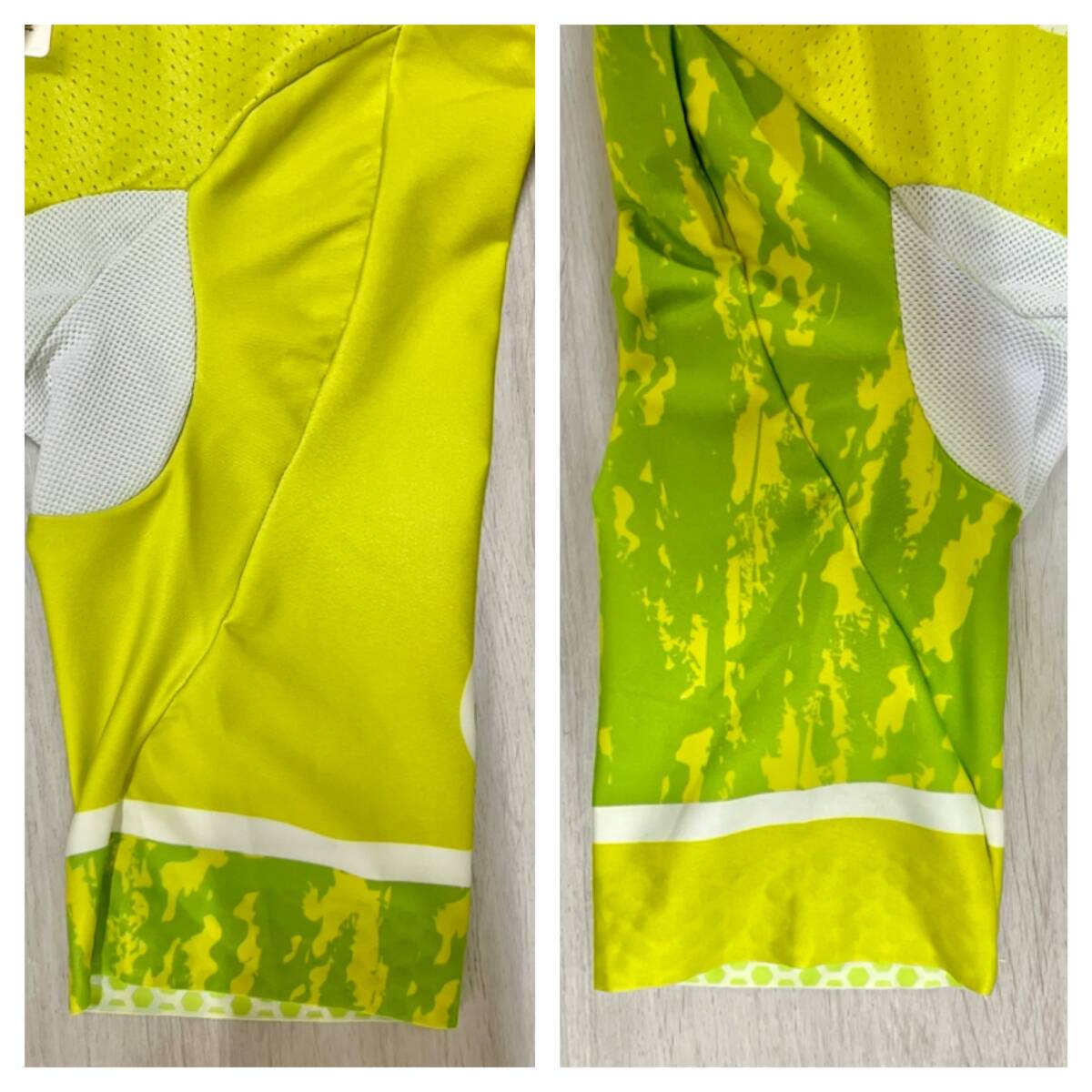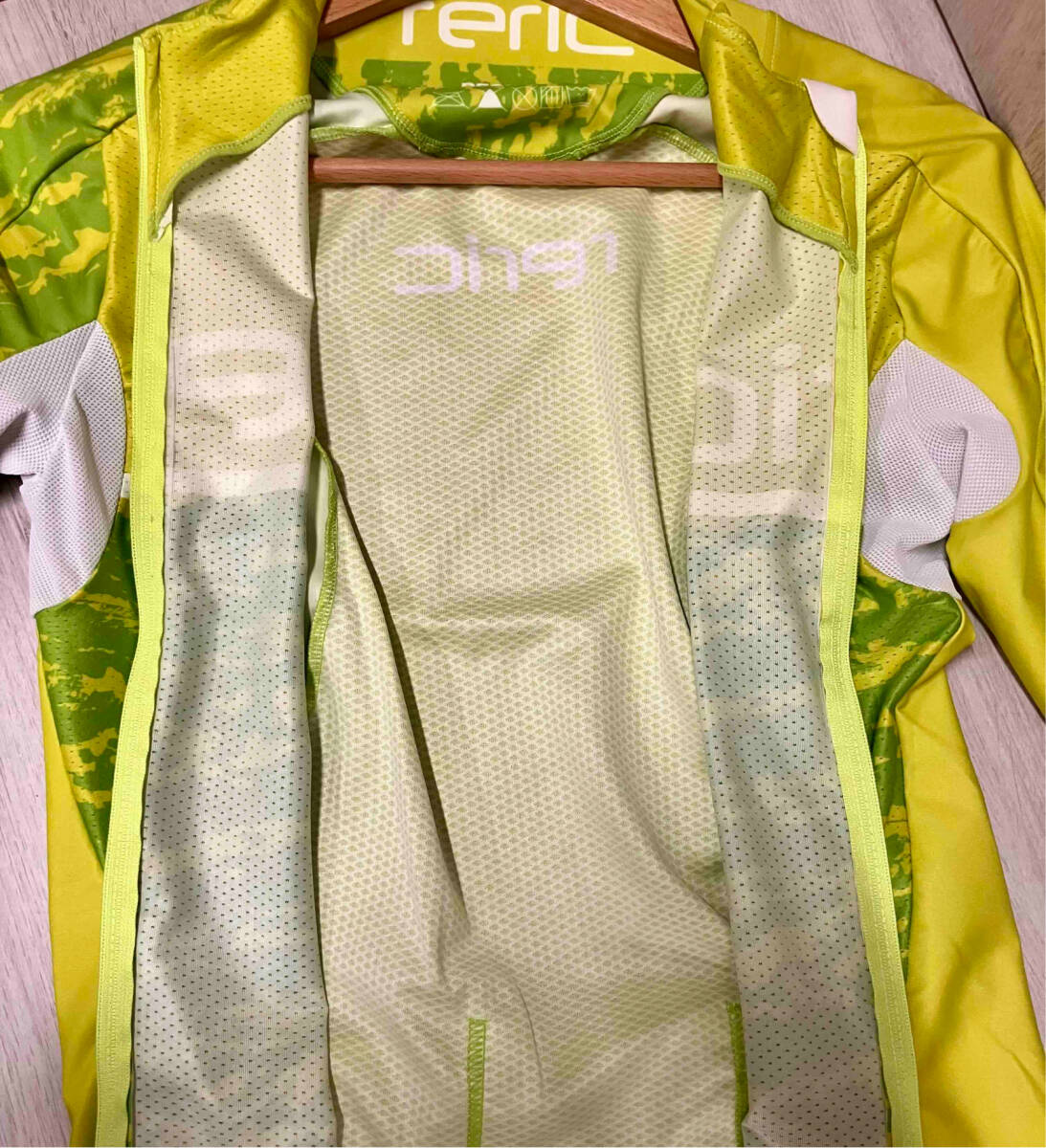 ※写真の明るさにより実際の色味と異なる場合がございますのでご了承ください。 [仕様] 背面にポケット3つ 背面にジッパーポケット付き ジッパー付き [素材] 前身頃 表側 ポリエステル80% ポリウレタン20% 後身頃 ポリエステル100% 袖 ポリエステル84% ポリウレタン16% メッシュ ポリエステル82% ポリウレタン18% ジャンル/スタイル 自転車 ジャケット ブランド名 RERIC サイズ 表記サイズ:M 着丈:約 55cm 身幅:約 35cm 裄丈:約36cm サイズ表記(~cm位)は目安です。ブランドやデザインによって多少前後する場合がございます。予めご了承の上ご注文ください。 カラー グリーン |