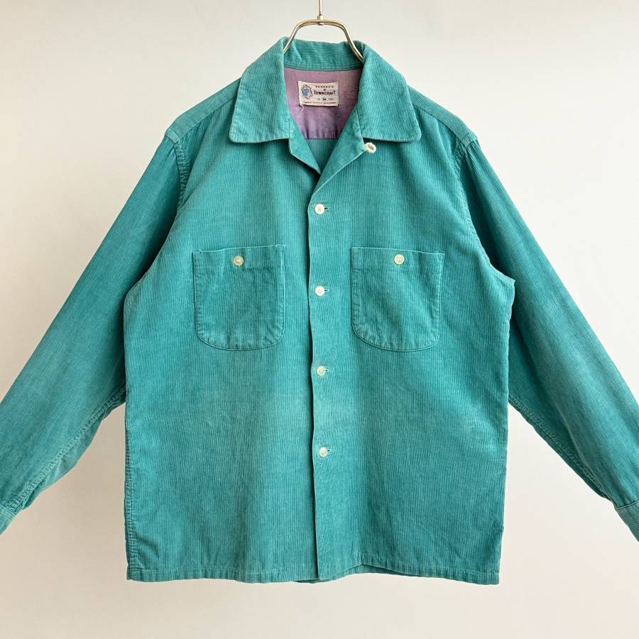 希少《 Good Condition / TOWNCRAFT 》50s 美品【 タウンクラフト ティファニーブルー M コーデュロイ ボックスシャツ ビンテージ 】