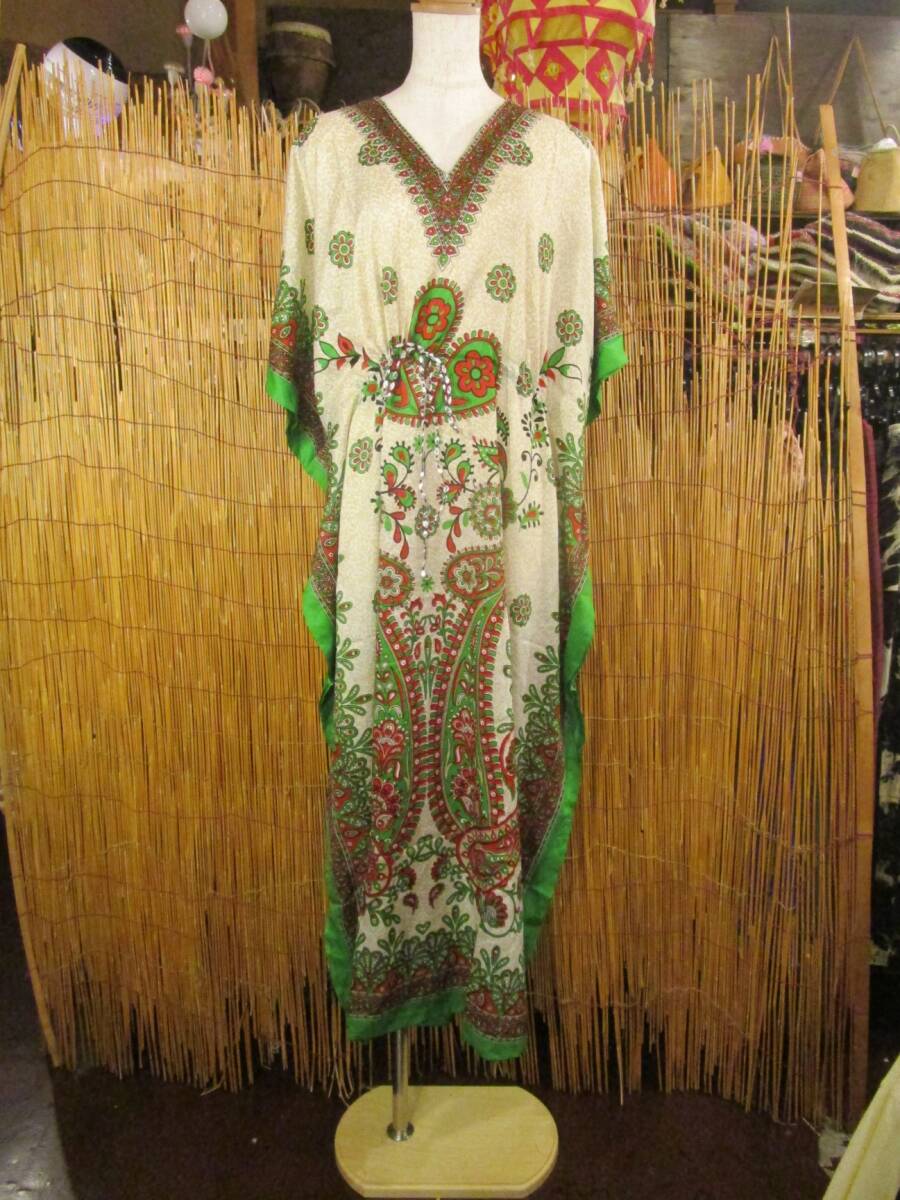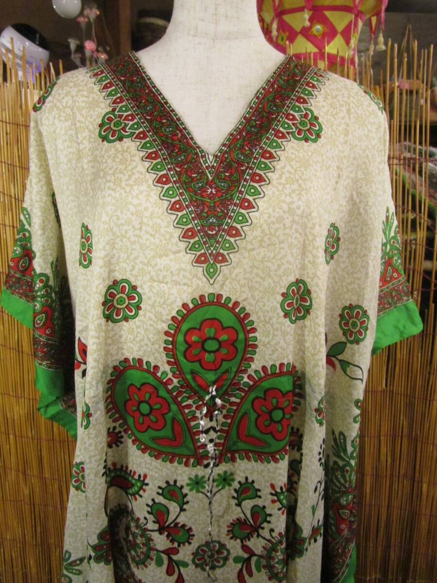 ③新品*薄手ビスコース素材*ゆったりサイズ *ペイズリープリント*ガラベーヤ*ポンチョ風*マキシ丈*ワンピース*ベリーダンス