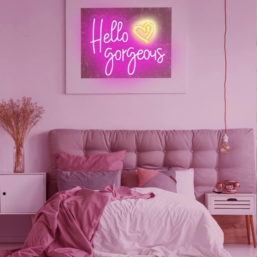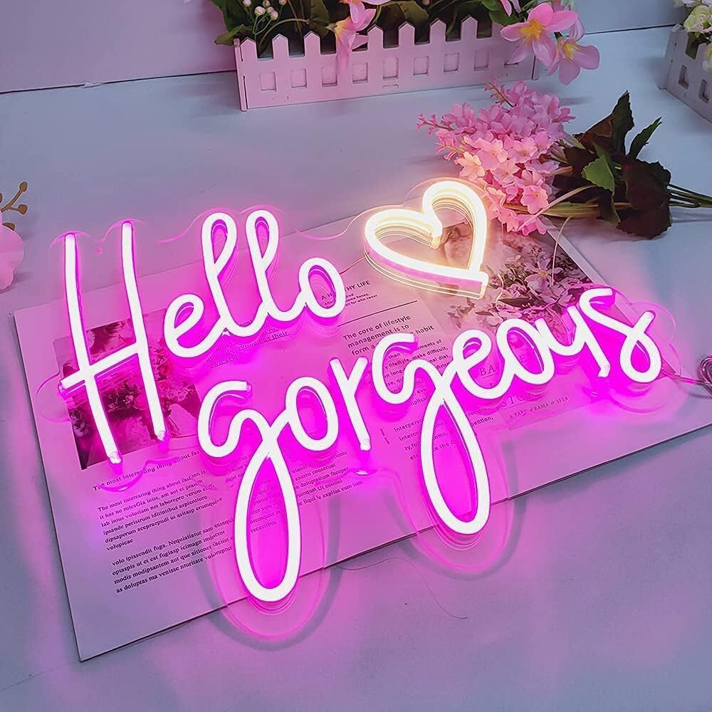ネオンサイン Hello Gorgeous 女の子の寝室 ホテル カフェ ロマンチック Led ピンク 結婚式 ギフト パーティー 母の日 スイッチ付