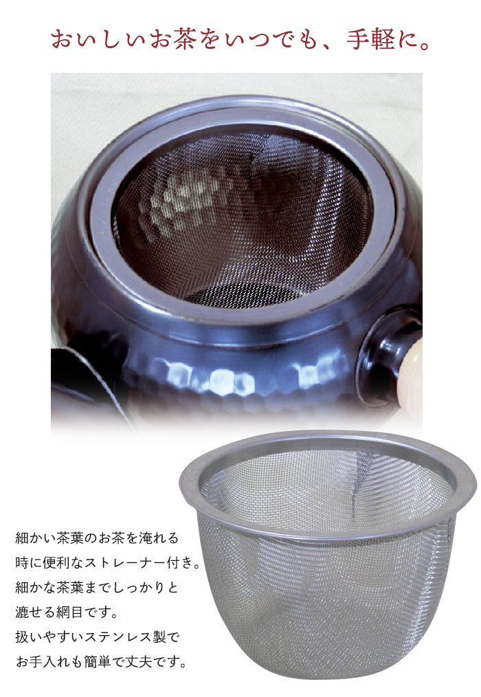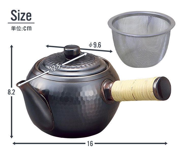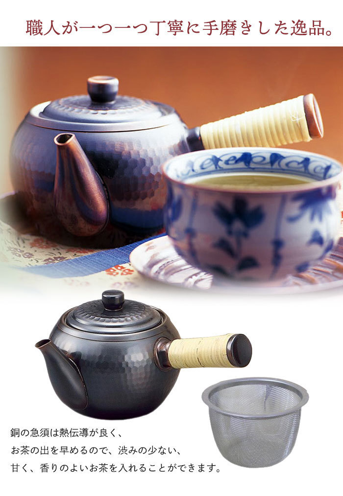 | 商品名 | 木箱入り 急須 茶こし付 横手 ストレーナー付 純銅製 槌目 ブロンズ仕上げ 来客用 お茶 茶道具 茶器 日本製 燕三条 銅 M5-MGKAH00111 |