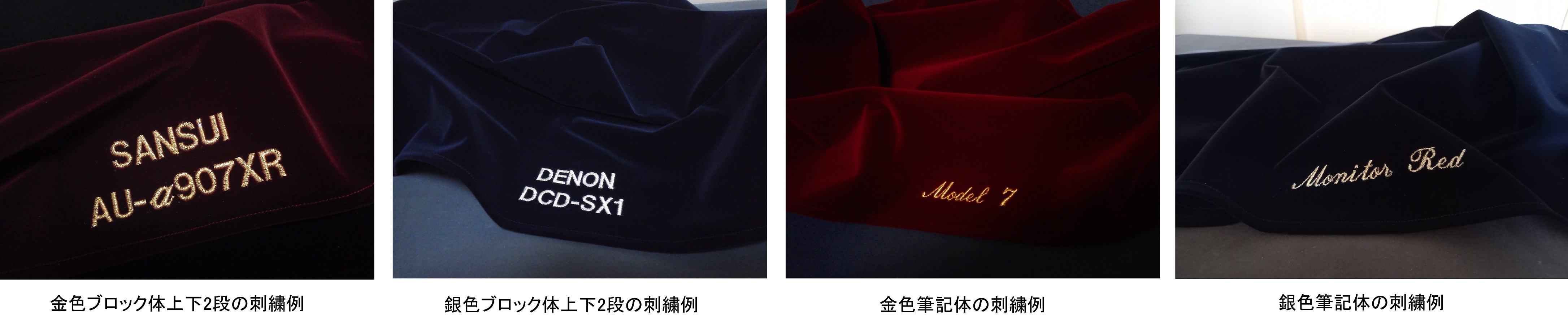YAMAHA NS-3000専用、ベルベット・スエード製の高級スピーカーカバーをお客様のご希望に応じたオーダーメイド仕様で製作いたします。 他では手に入らない当社のカバー、ぜひ一度お試しください。 上の画像は生地の色がブラック、正面左右のスリットなし、金文字通常サイズ筆記体の刺繍、背面は中央に裾から15cmのスリットを入れた仕様の一例です。 カバーのお手入れについてですが、カバーに付着する埃はハンディタイプの埃とりブラシ(100円ショップのもので十分)が効果的です。洗濯はできませんが、シワを補正する場合は低温で裏側からアイロンをかけます(表側や高温でかけると変色の可能性があります)。 貴殿のオーディオ機器を埃や日焼けから守ります。 またインテリアとしてもグレードアップすること間違いなしです。 ■ 生地・カバーの色(標準仕様) ![]() 生地につきましては日本製で、表面は化学繊維系の高級なベルベット・スエードです。 裏面は表面とは異なる素材で、静電気が発生しにくく、滑らかな素材です。 色は人気のブラック、エンジ、ダークネイビーのほか、ワイン、ダークブラウン、ライトネイビー、ライトブラウン、グリーン、ダークグリーン、レッド、ライトレッド、パープル、ホワイト、オフホワイト、ライトグレーの15色からお選びいただけます。 ■刺繍など(9文字以上はオプション) ![]() ご希望の方には、一段か上下二段でメーカー名や機種名の刺繍を施します。刺繍位置は正面中央下部ですが、別の位置に変更することもできます。刺繍の糸の色は金か銀、文字の大きさは通常ノーマルサイズか、小スモールサイズをご選択できます。文字の種類はブロック体と筆記体のどちらかがご選択できます。筆記体をご希望される場合は頭文字だけ大文字で以下が小文字が見栄えがいいです。すべて大文字の筆記体は文字バランスがあまりよくありません。以下の画像でご確認ください。8文字までは標準仕様に含まれますが、9文字以上は数百円のオプション料金がかかります。 ![]() ご落札後は以下の部分をコピーして取引メッセージにてご希望の仕様をお知らせください ------------------------------------------------------------------------------------------- ■ メーカー名( ) 機種名( ) ■ カバーの色( ) ■ カバーの丈(本体高さと同じ・+1cm・+2cm・-1cm・-2cm) ■ 背面の裾からのスリットの長さ( cm・おまかせ) ■ 刺繍 (あり・なし)※ありの場合は以下もお知らせください 色(金・銀) 1段の場合 文字サイズ(通常・小)、文字( )、字体(ブロック体・筆記体) 上下2段の場合 上段 文字サイズ(通常・小)、文字( )、字体(ブロック体・筆記体) 下段 文字サイズ(通常・小)、文字( )、字体(ブロック体・筆記体) ------------------------------------------------------------------------------------------- ※YAMAHA NS-3000以外の機種では価格が異なる場合がございます。 ※カバーの色は商品説明の15色の中から1色ご選択ください。 ※丈を本体高さよりも3cm以上長くする場合は追加料金がかかります。 ※正面左右スリットは無しになります。 ※背面のスリットは中央1スリットになります。 ※スリットの長さはカバーの裾からの長さです。丈を長くする場合はご注意ください。 ※刺繍の位置は正面中央下部です。別の位置へのご希望がありましたらお知らせください。 ※刺繍の文字数が8文字を超える場合は500円の追加料金(送料に加算)がかかります。 オーディオやスピーカーのカバーを製作し始めて10年以上が過ぎましたが、 大変多くの方にご購入いただき、いい評価をいただいております。 お客様のご希望のカバーをヤフオクに出品したいのですが、 オーディオ・スピーカーは星の数ほどあり、 ご希望の仕様で価格が変わるオーダーメイド商品の都合上、出品しづらいのが現状です。 別の機種のご希望のカバーがございましたらヤフオクに出品いたしますので、ぜひお知らせください。質問欄または以下からお願いいたします。お見積もりはこちら お見積もり後、速やかにご希望の商品をタイトルに機種名を入れてヤフオクに出品いたしますのでそちらでご検討いただければと思います。なお出品する商品の画像はオーダーメイド商品の都合上、一般に別の機種のものになります。ご了承ください。 当方のホームページからでもご注文可能ですが、 ヤフオクからのご注文の方がお求めやすく、お客様にとってメリットが多いです。 ※クーポンやポイントの利用、お支払いが便利、ゆうパック等の送料が安いなど 発送までのお時間はご入金をいただいてから5日ぐらいです。 お届けしたカバーがきつすぎて入らなかったり、緩すぎたりしてカバーとしての機能をなさない場合があるかもしれません。そのような場合は無償で補正や再製作をいたします。 | |||