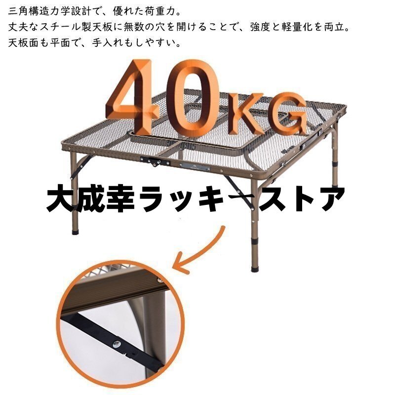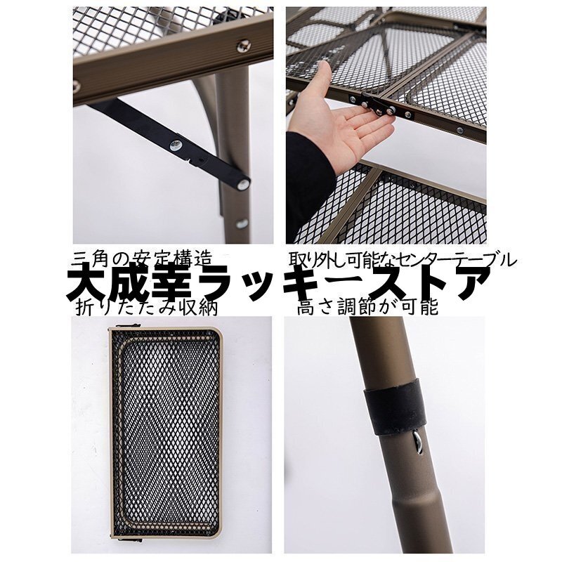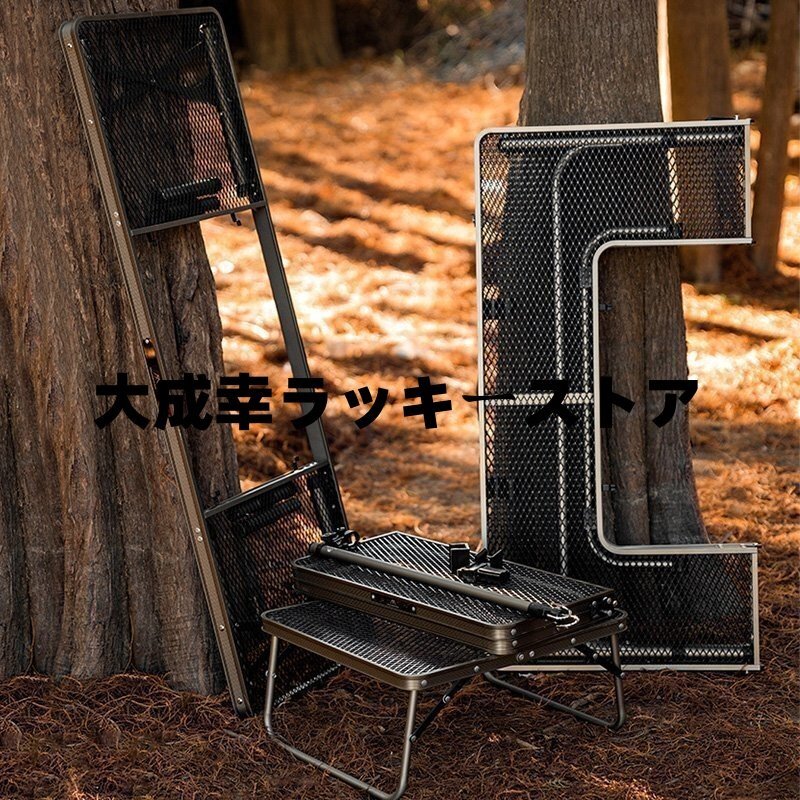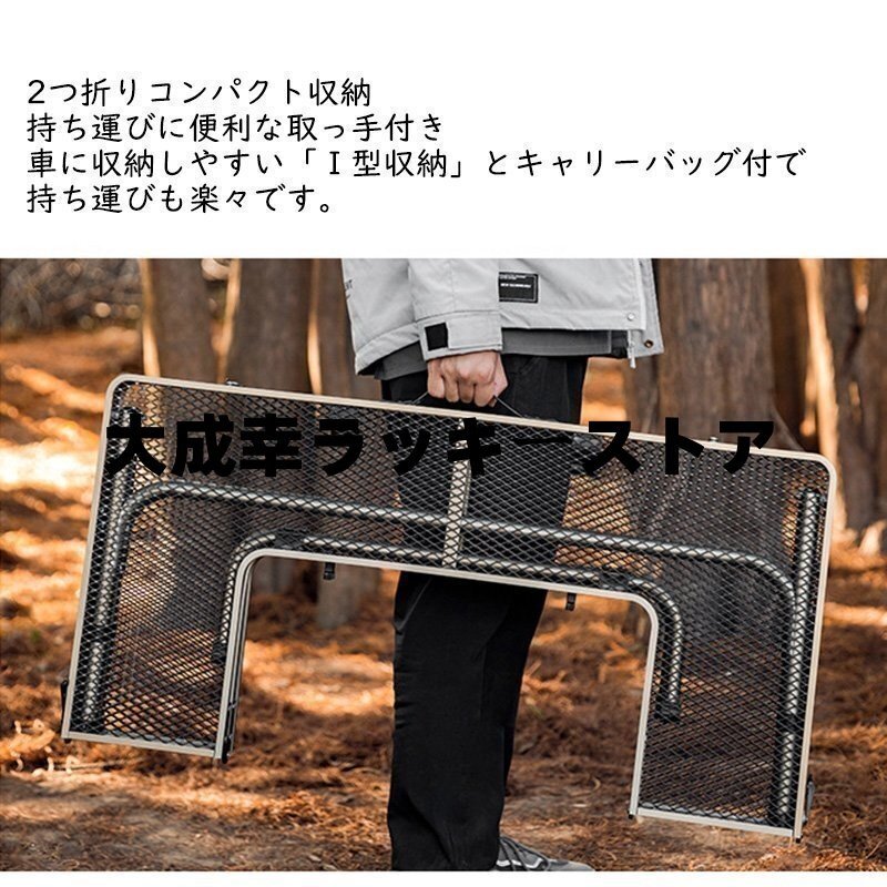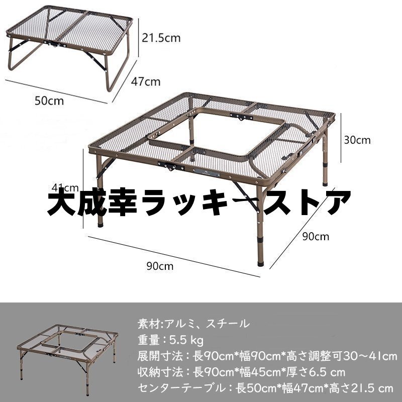 アイアン囲炉裏テーブル メッシュ 焚き火テーブル 着脱式センターテーブル付き 2つ折りコンパクト収納 調理ツール BBQアウトドア ブラック