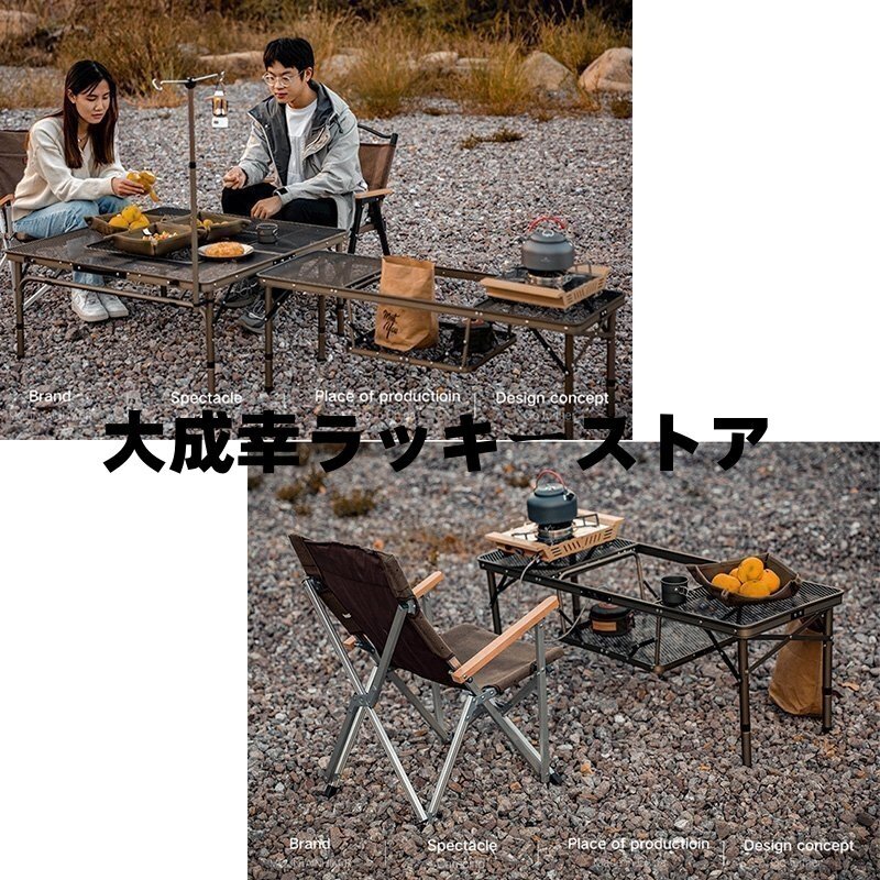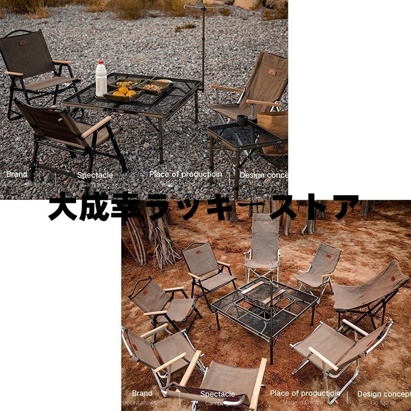 ②チェアに座りながら、たき火やBBQが楽しめるテーブル。 放熱性に優れた丈夫なスチールメッシュ天板を採用し、中央にたき火台やグリルを設置することで、チェアに座りながらたき火やBBQを楽しめる。