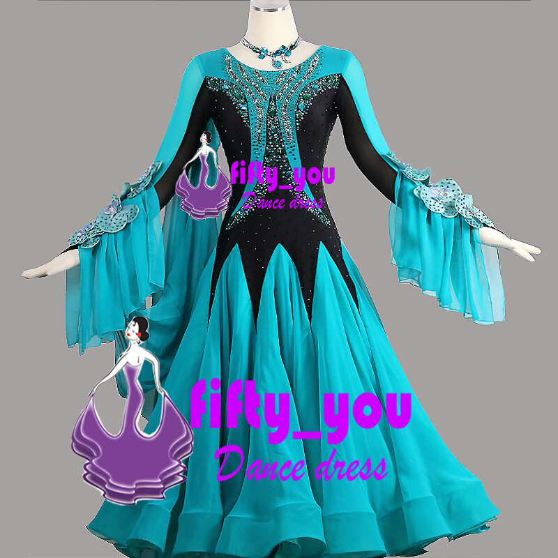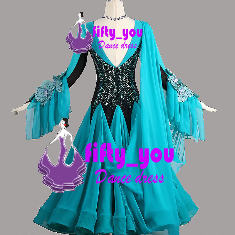 新品fifty_you レディース社交ダンス衣装 サイズセミオーダー モダン競技試合用ドレス スタンダードドレス 蘭のお花飾り 高級品