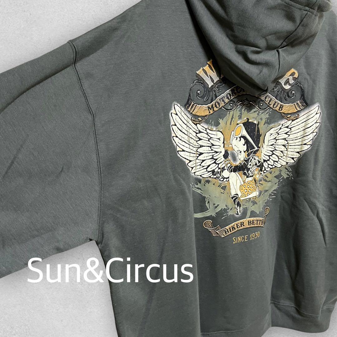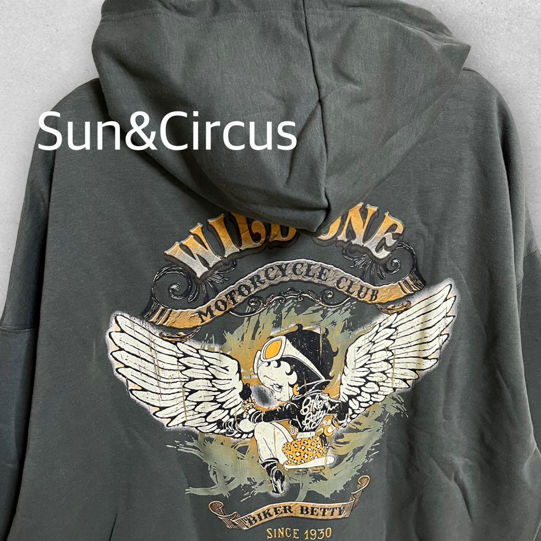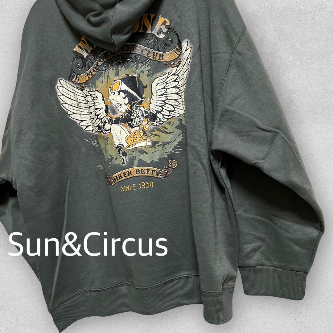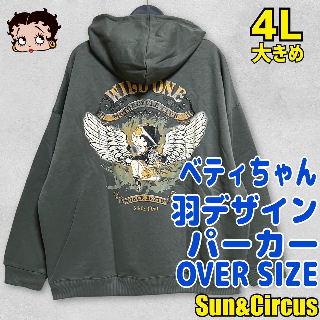 バックプリントの羽ベティちゃんがセクシーで可愛く、かすれデザインもビンテージライクでかっこいい、プルオーバーパーカーです。