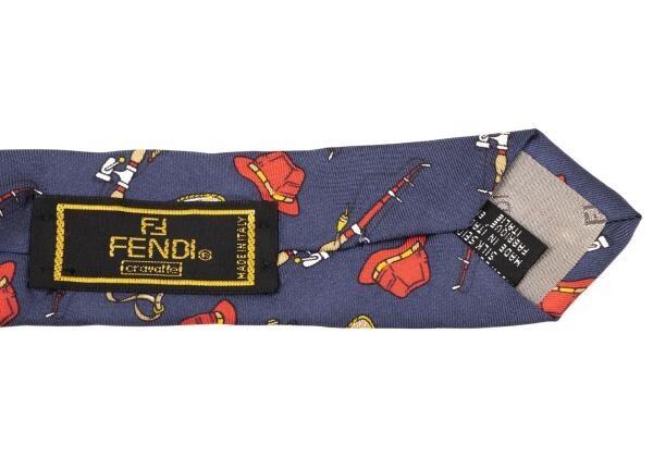 フェンディFENDI フェンディFENDI フィッシングプリントシルクタイ 紺赤 |