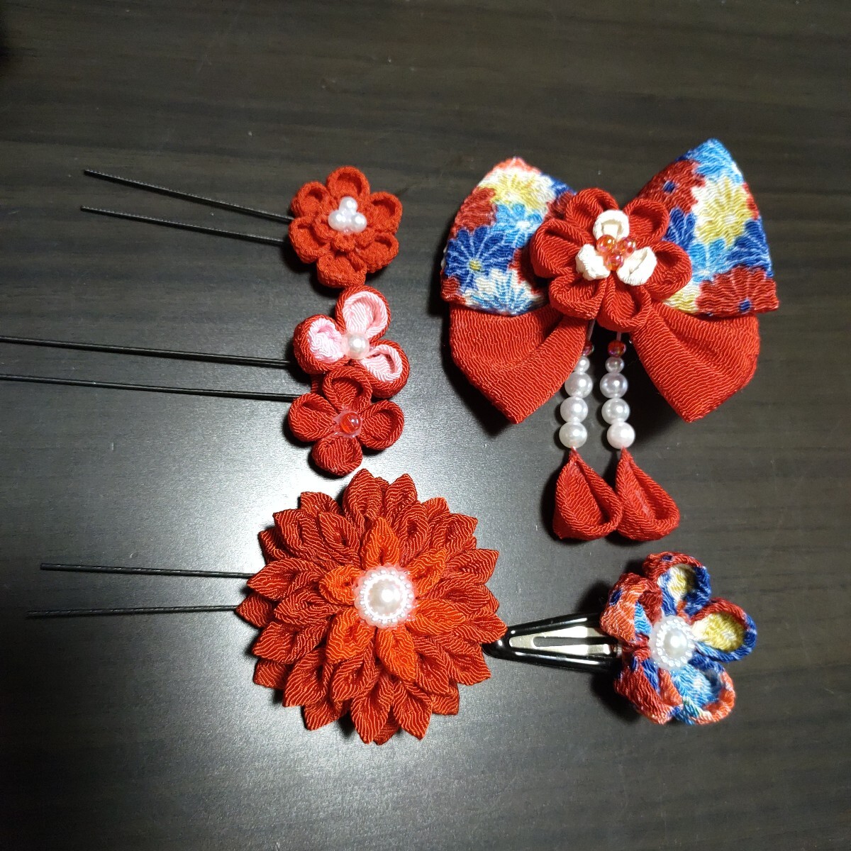 つまみ細工の髪飾りのセットを出品します