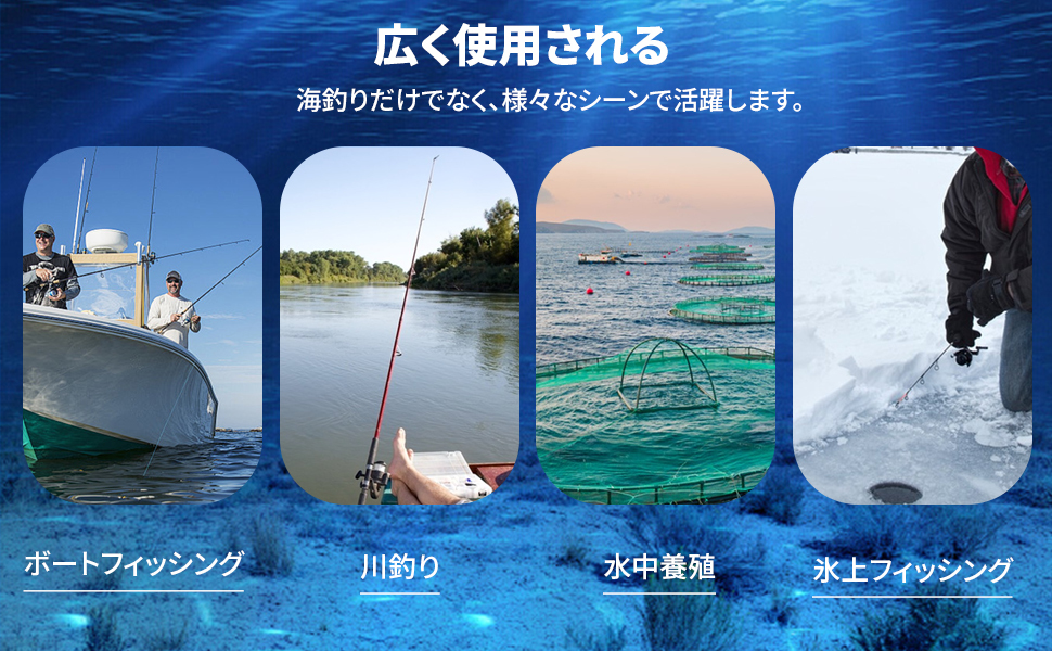 【たっぷり使える大容量バッテリー搭載】 満充電大容量で最大8時間使用可能。長時間の釣行でも安心して使える。