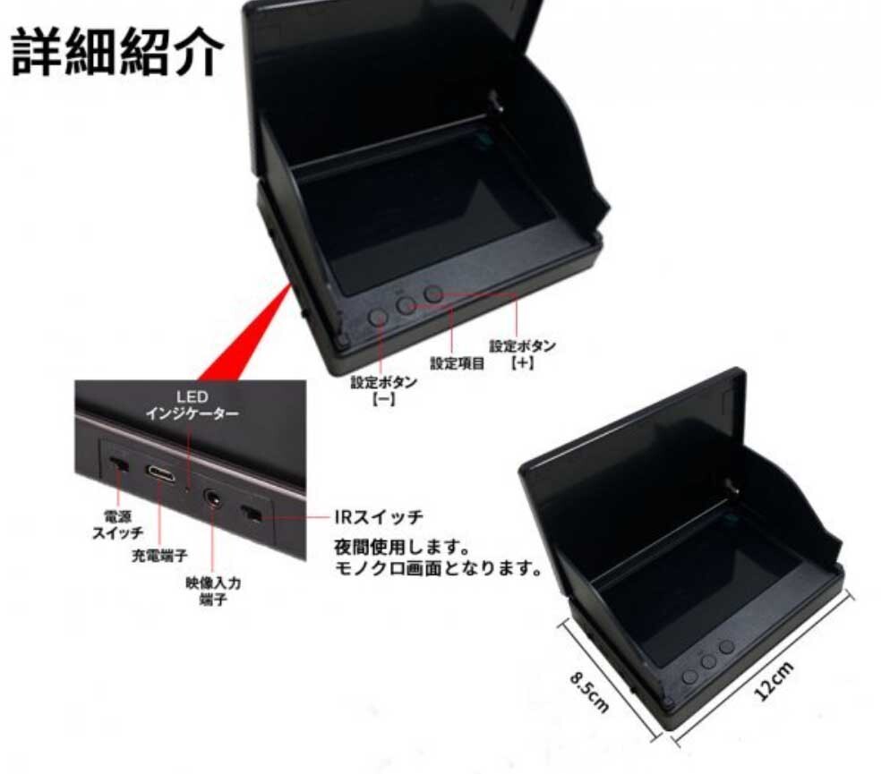 【4.3インチモニター】 直感的に操作可能な簡単仕様。 使用時カバーを開けるとバイザー。