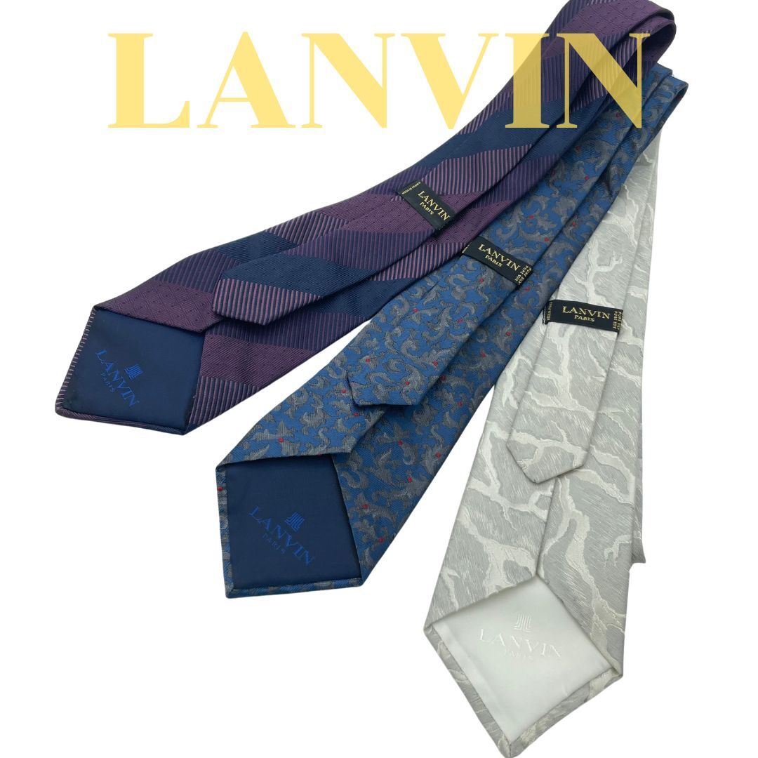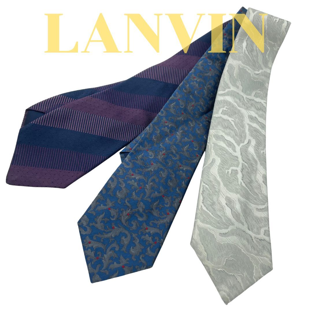 AC09-174 【美品】LANVIN ランバン シルク ネクタイ 青 紫 白 3本セット