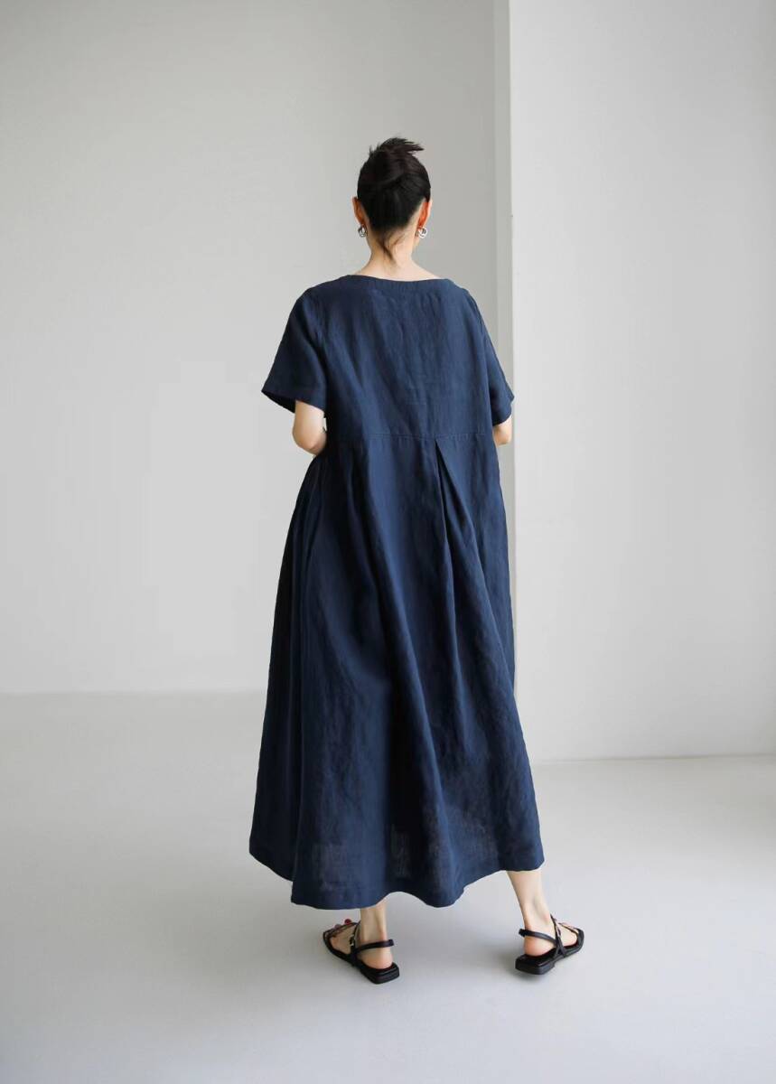 同梱1万円送料無料★綿素材のロング丈長袖ワンピ★新品★大きいサイズ★秋の長袖チュニックワンピやわらか素材でゆったり 紺色