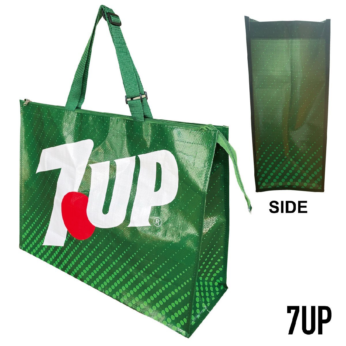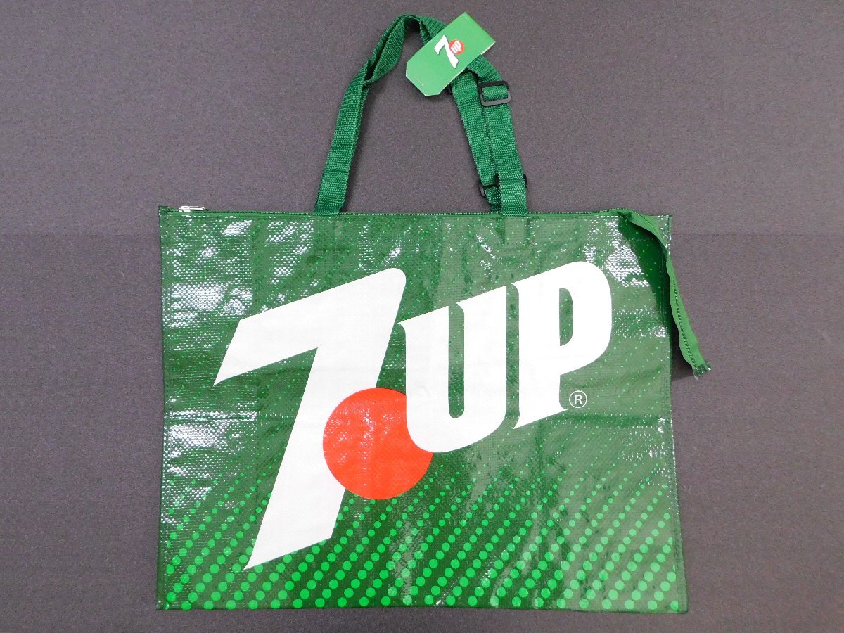 「7UP」のロゴマークが大きくプリントされた、ビッグサイズのショッピングバッグです。