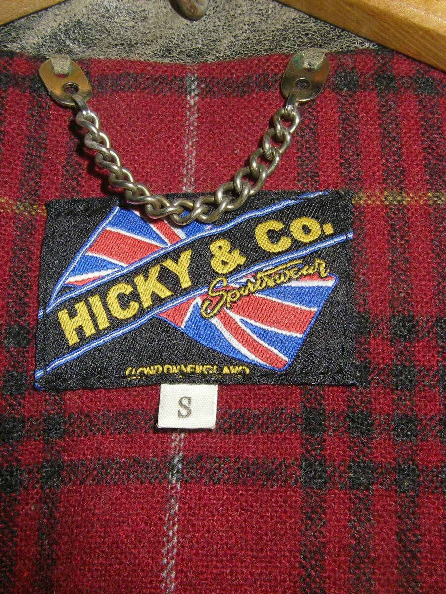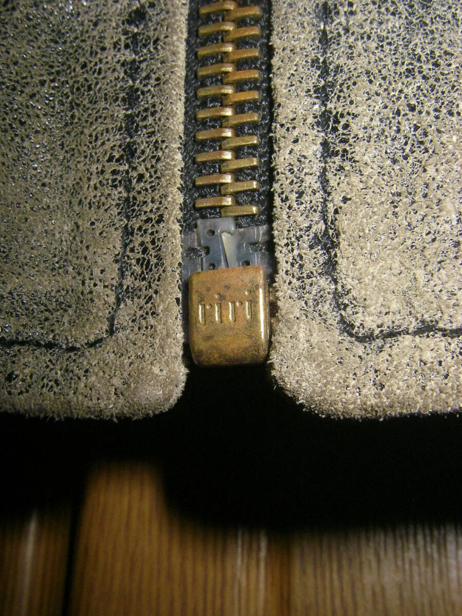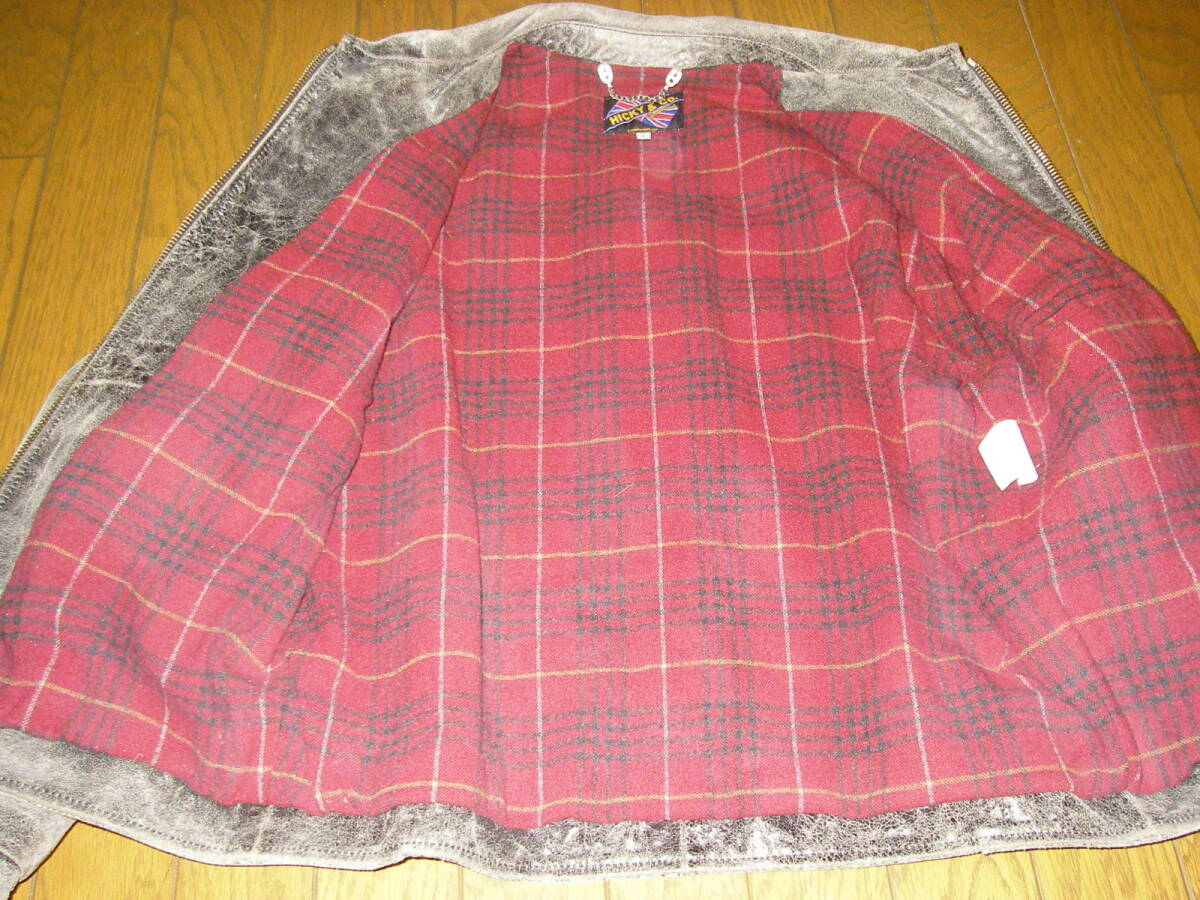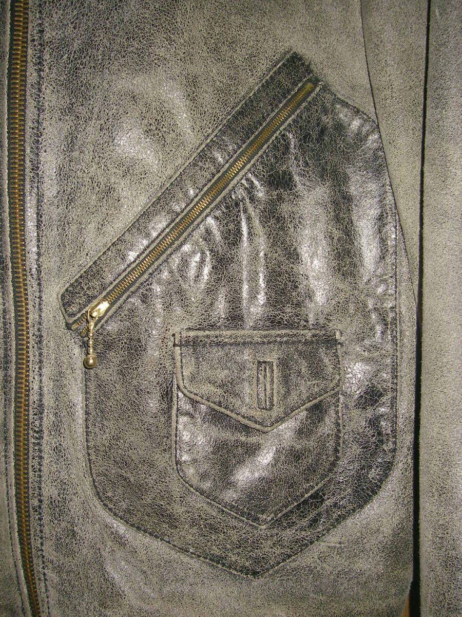 シップスで購入、HICKY&Co(英国製、イタリア製両方の表記がございます)のグレー系のシングルの革ジャンです。牛革です。ヴィンテージ、アンティーク加工でいい味出ております。前ZIPはririZIPです。若干の使用感ざいますが、特に大きなダメージも無く、状態良好です。あくまでもUSED品ですので、神経質な方、USEDレザーのご理解の無い方、入札しないで下さい。メーカーサイズ表記Sサイズで、平置き採寸で、肩幅48,5センチ、袖丈64センチ、着丈65センチ、脇下身幅52,5センチです。素人採寸ですので多少の誤差はお許し下さい。